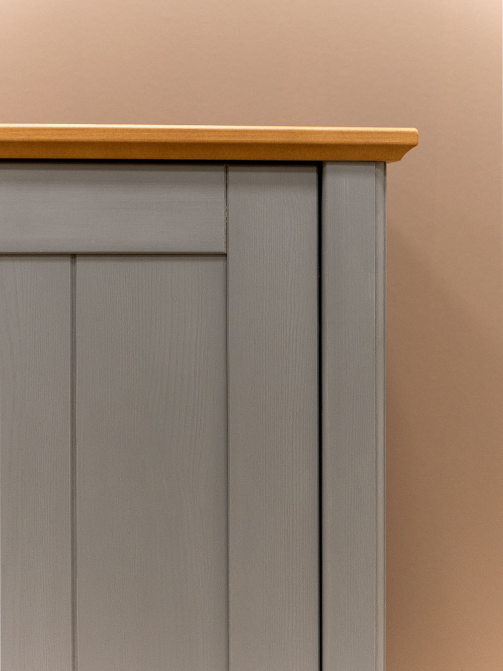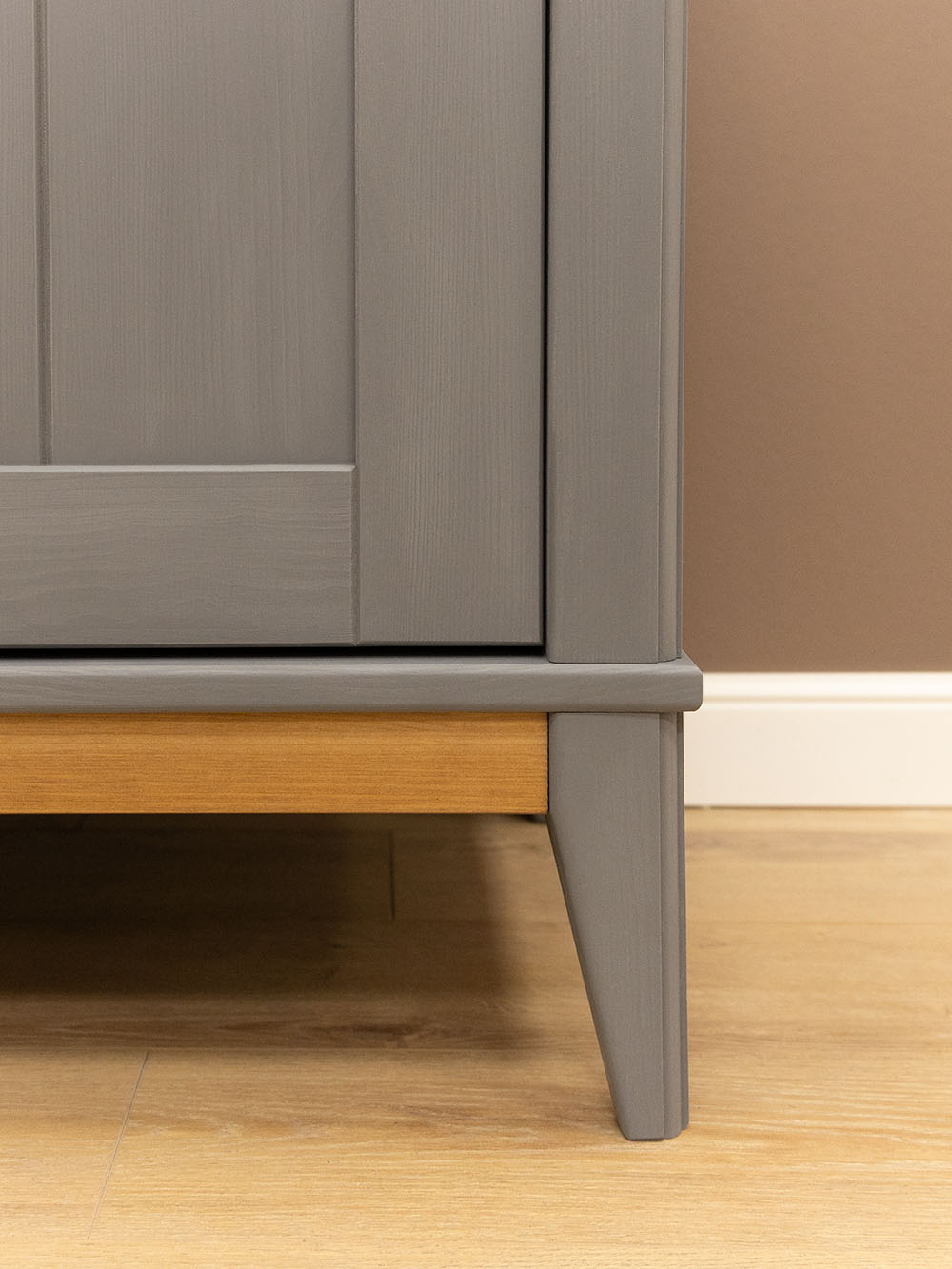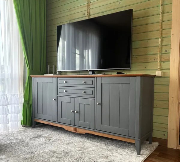 Фурнитура: Петли с доводчиком вкладные. Направляющие скрытого монтажа с доводчиками. Ручка кнопка (состаренное серебро).