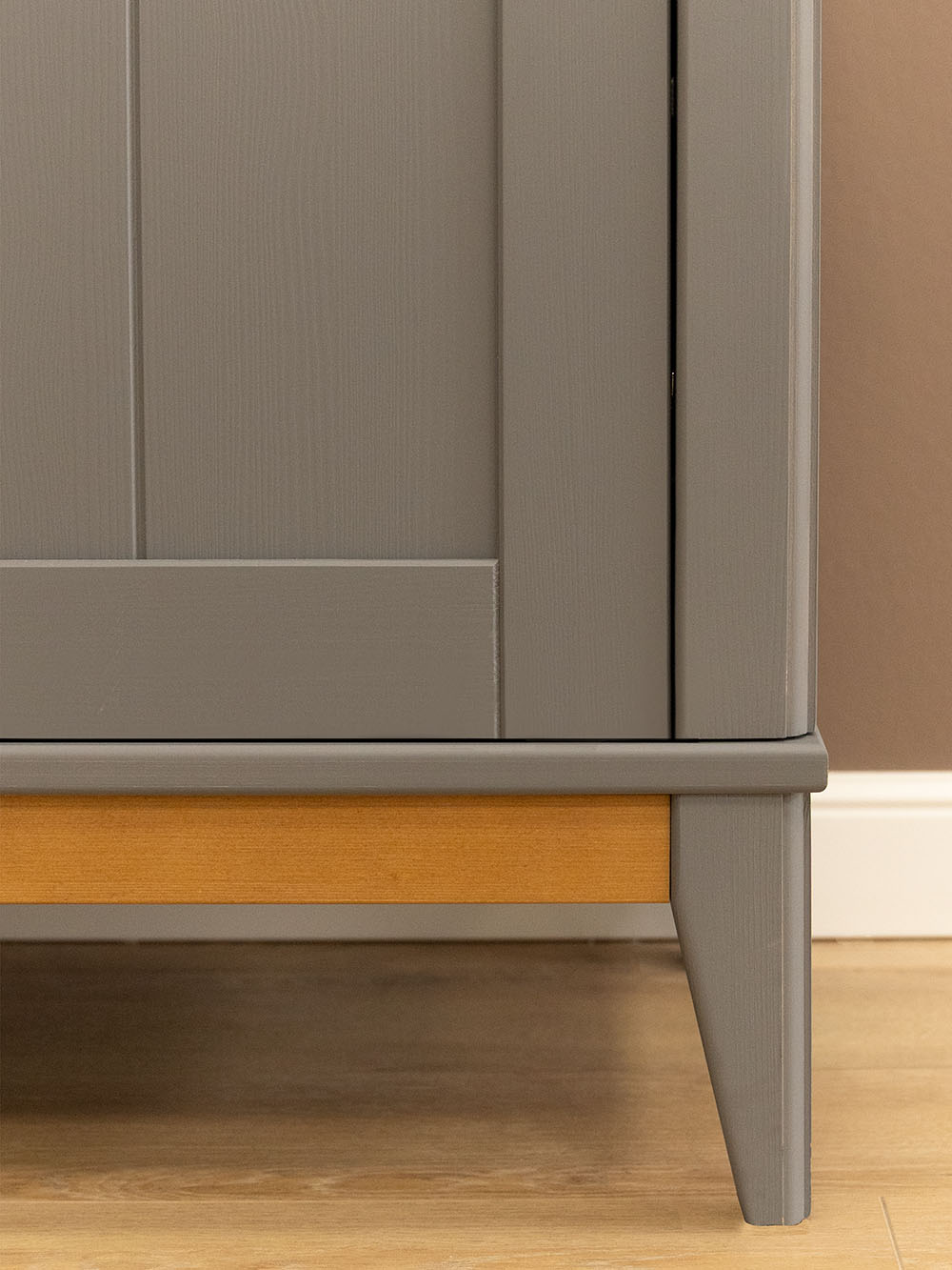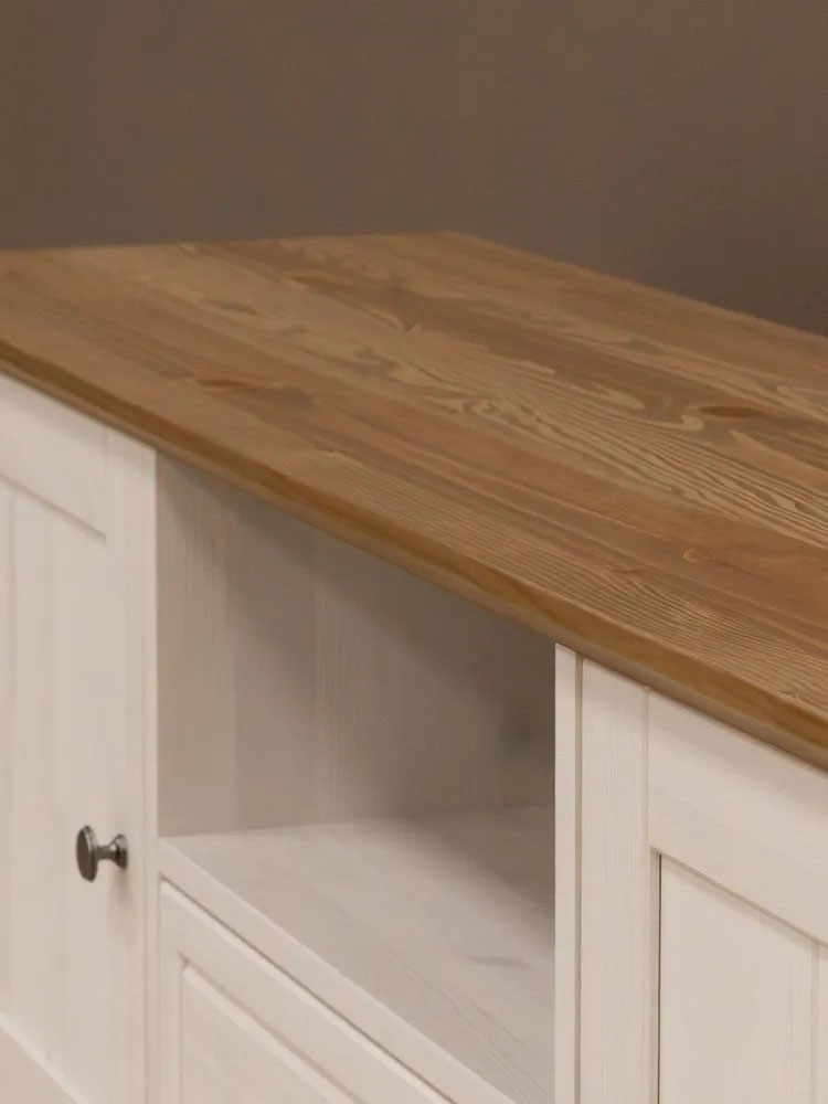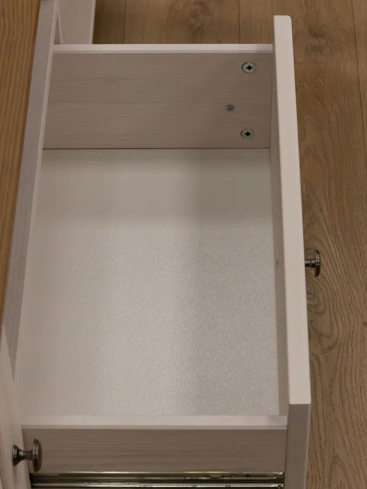 Фурнитура: Петли с доводчиком вкладные. Направляющие скрытого монтажа с доводчиками. Ручка кнопка (состаренное серебро).