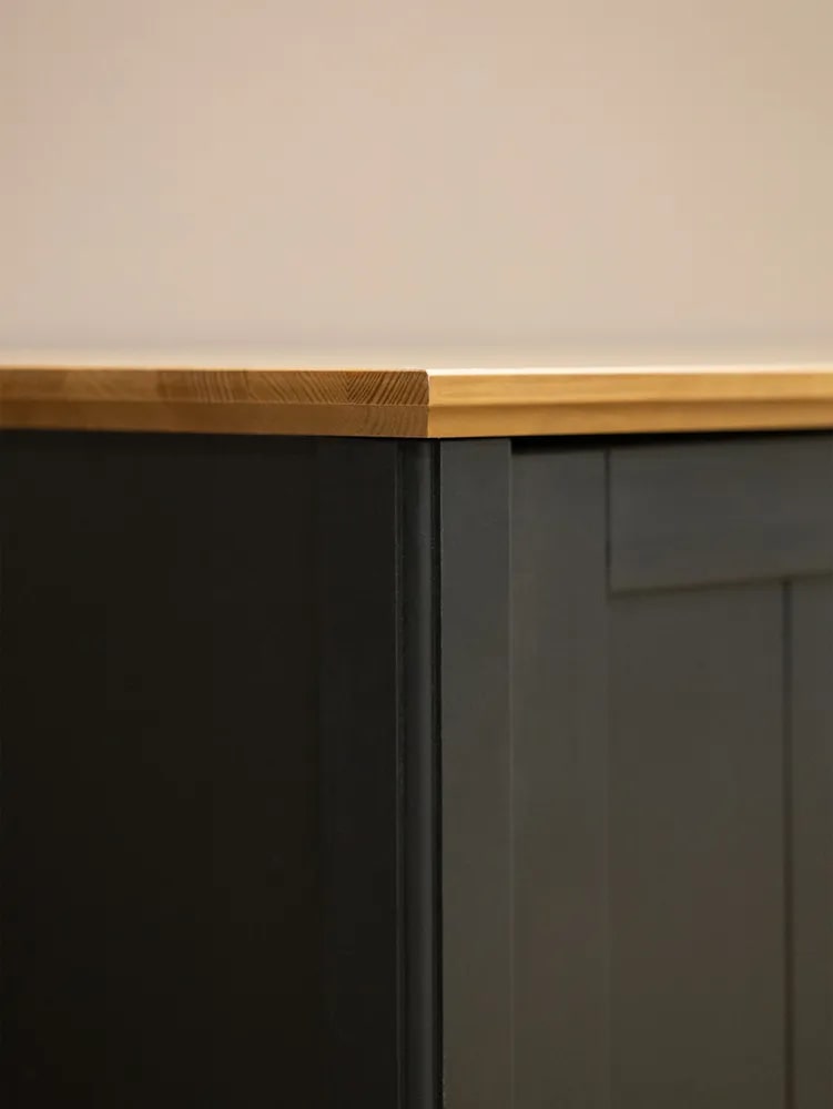 Фурнитура: Петли с доводчиком вкладные. Направляющие скрытого монтажа с доводчиками. Ручка кнопка (состаренное серебро).