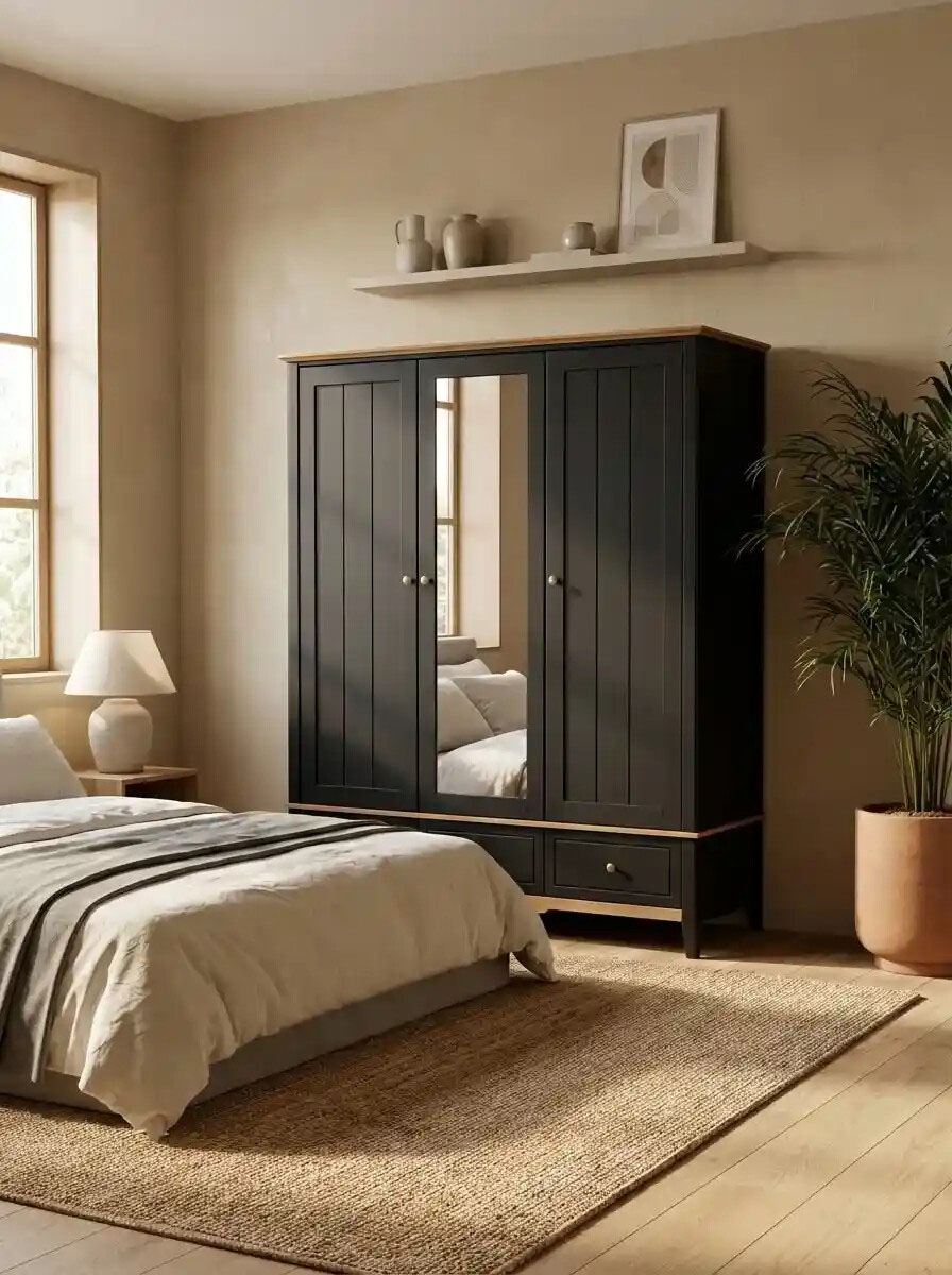 Шкаф трехдверный NN 33 Пенни Блэк комбинированный с 1-м зеркалом