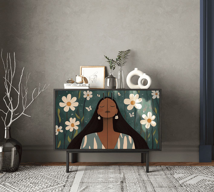 Комод с двумя дверками Emerson. Ножки из дерева под чёрной морилкой, корпус из лдсп.
