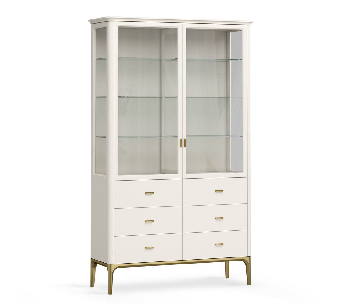 Особенности: Корпус поставляется в собранном виде. Требуется установка крышки и основания с ножками. Верхняя часть витрины окрашена в цвет светлый беж (K07 - ближайший RAL 9001), низ золотая патина.