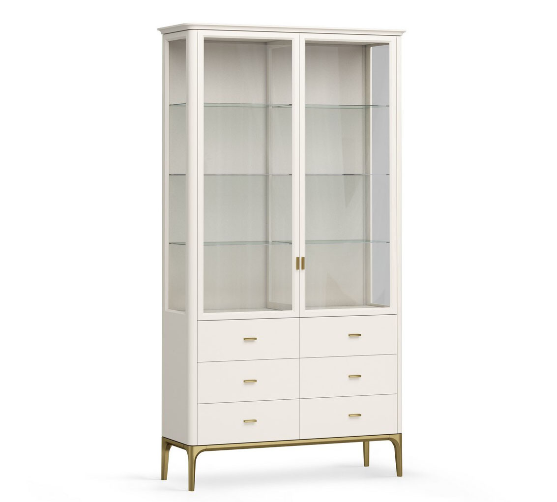 Особенности: Корпус поставляется в собранном виде. Требуется установка крышки и основания с ножками. Верхняя часть витрины окрашена в цвет светлый беж (K07 - ближайший RAL 9001), низ золотая патина.
