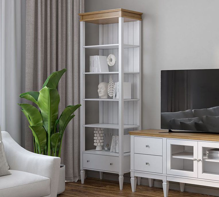Фурнитура: Направляющие на ящике с доводчиками. Ручки имеют форму квадрата, сделаны из металла под старое серебро.