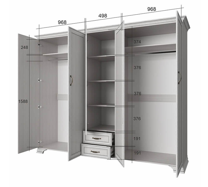 Шкаф пятидерный 5DG2S Z TIFFANY (вудлайн кремовый)