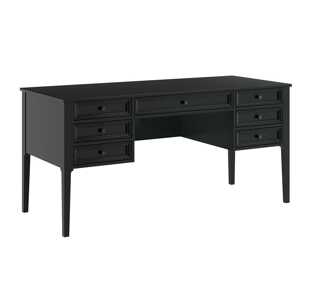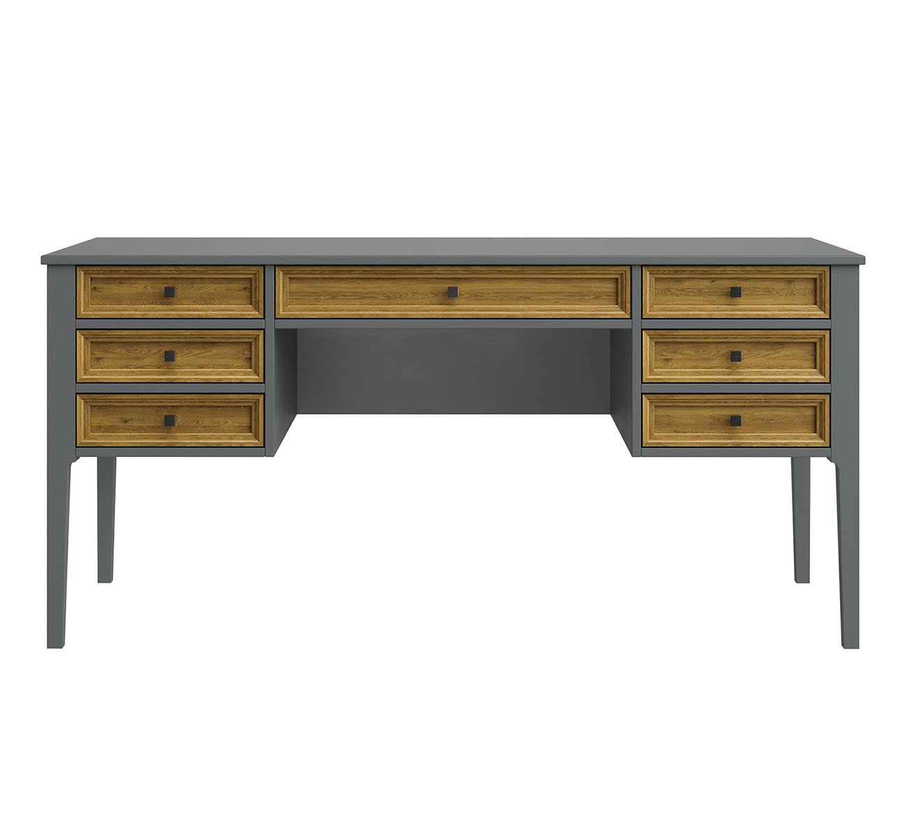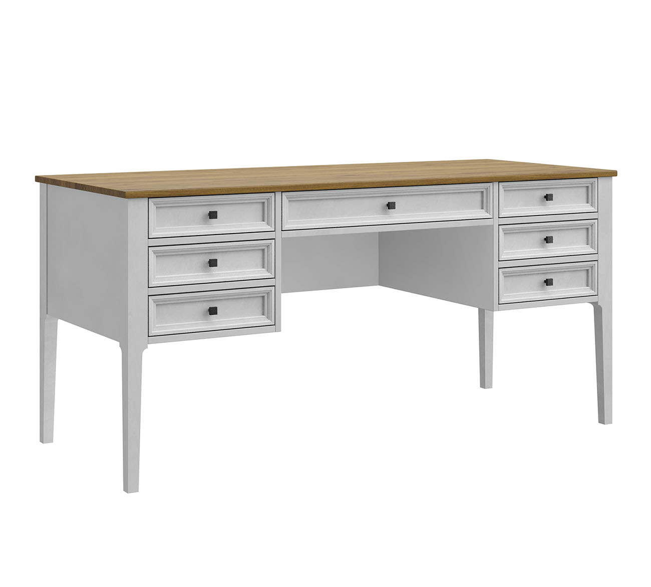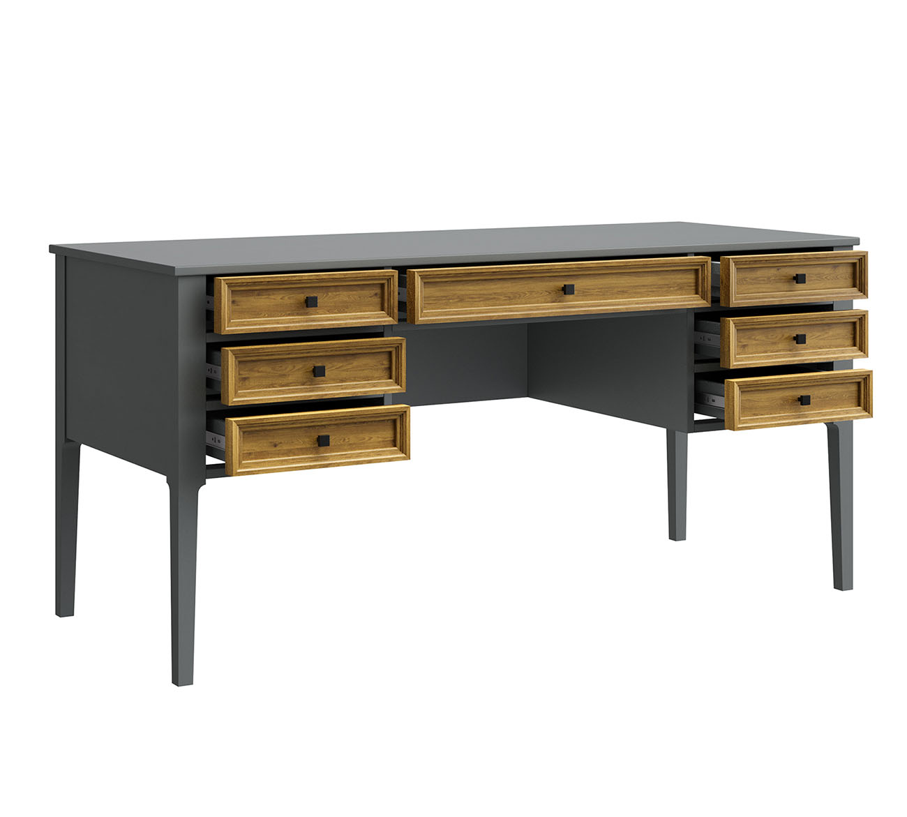 Классический стол из коллекции Квадро-С. Широкая удобная столешница подойдет для работы за компьютером. Под ней расположено семь выдвижных ящиков для канцтоваров, документов и разных мелочей. Дно ящиков - HDF.