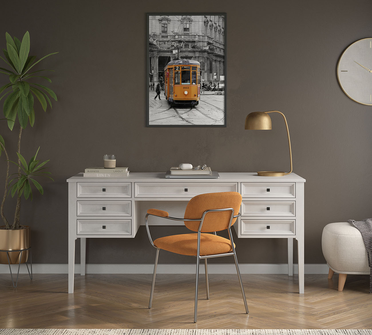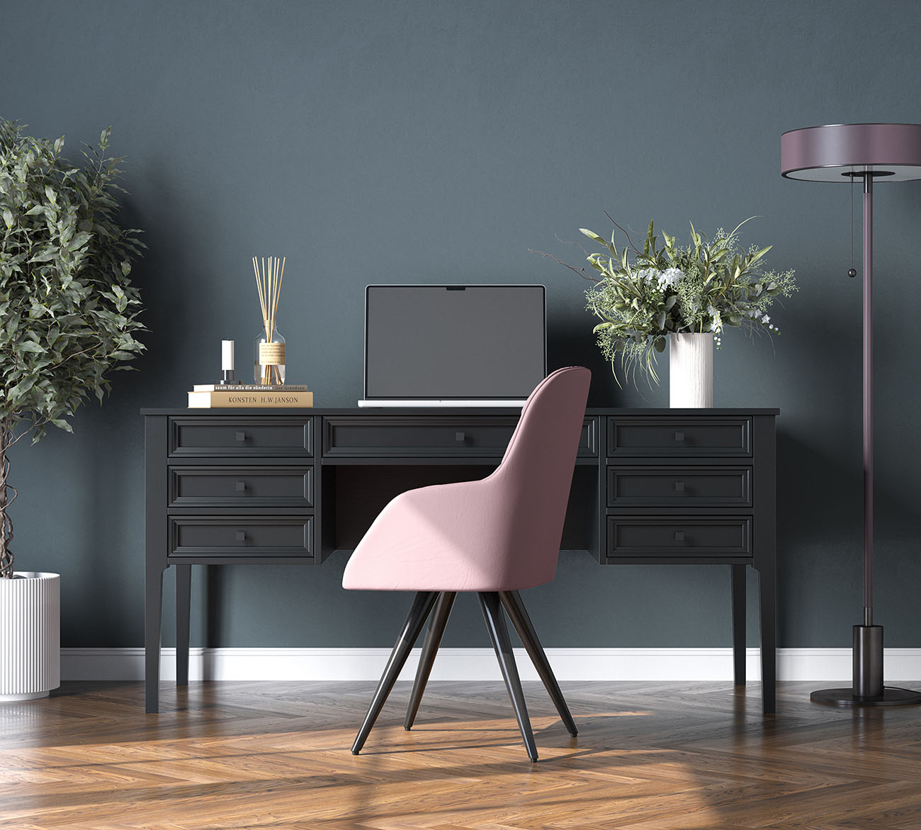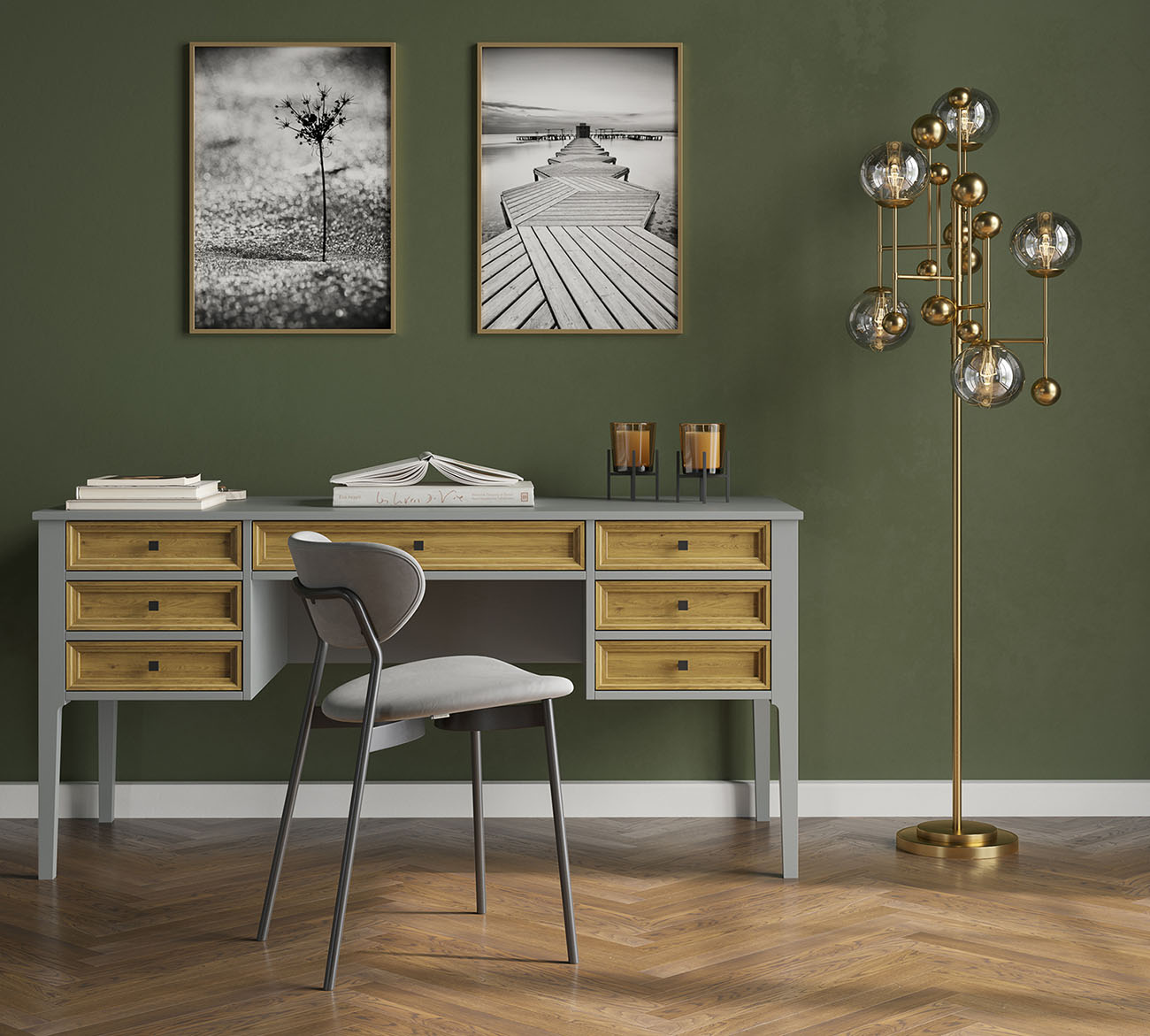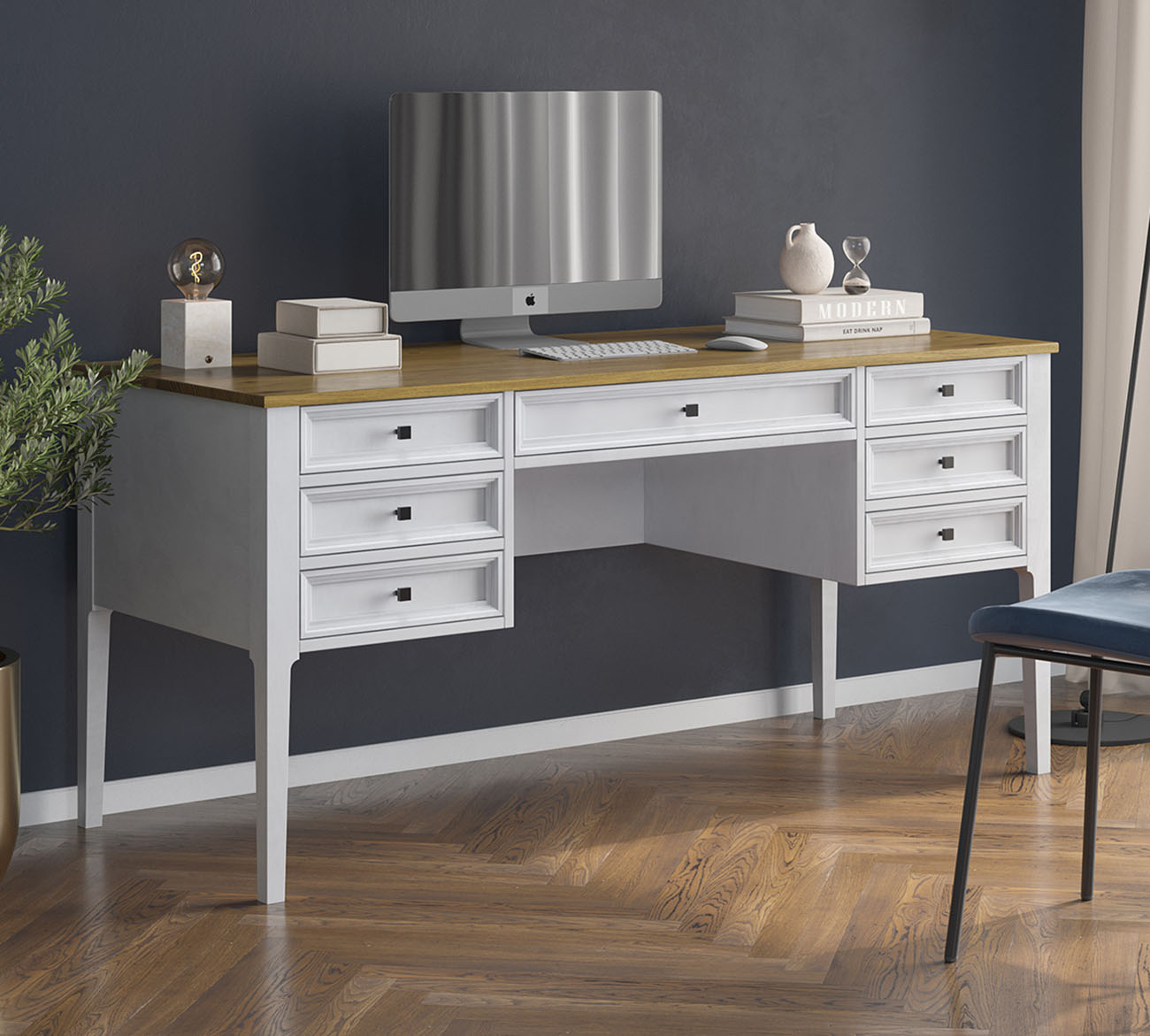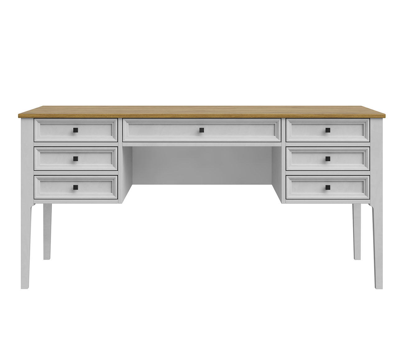 Классический стол из коллекции Квадро-С. Широкая удобная столешница подойдет для работы за компьютером. Под ней расположено семь выдвижных ящиков для канцтоваров, документов и разных мелочей. Дно ящиков - HDF.