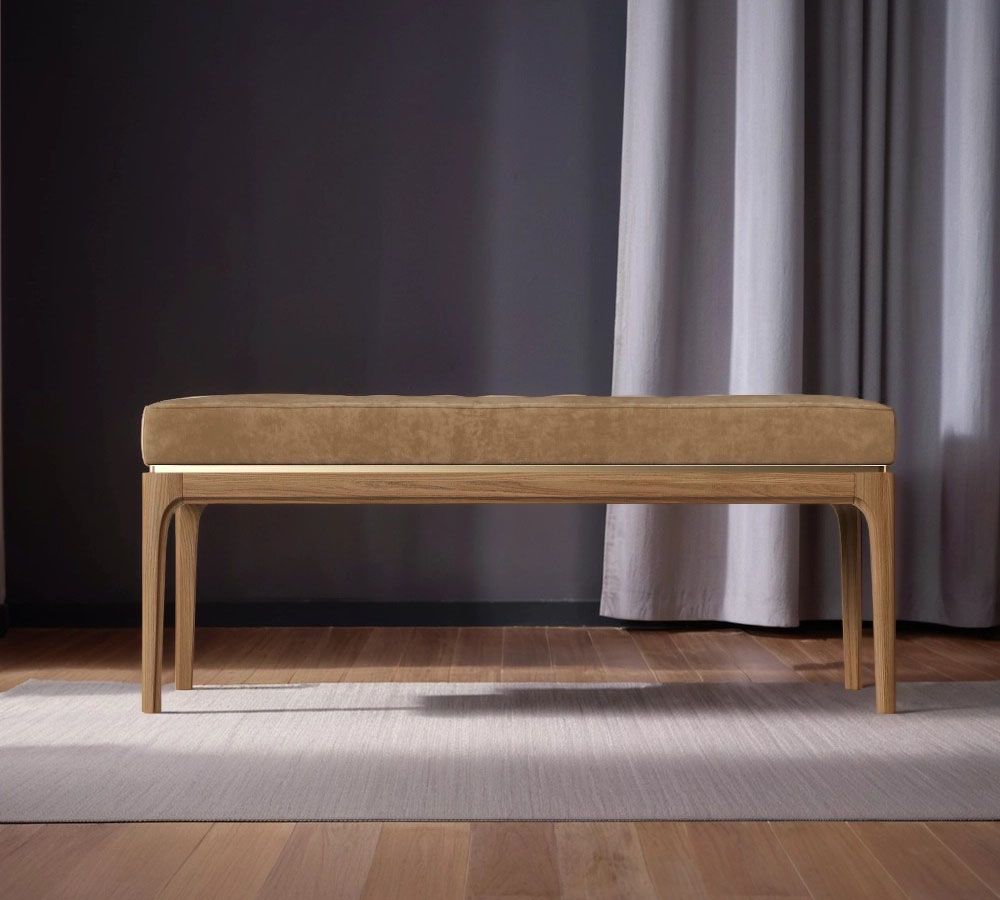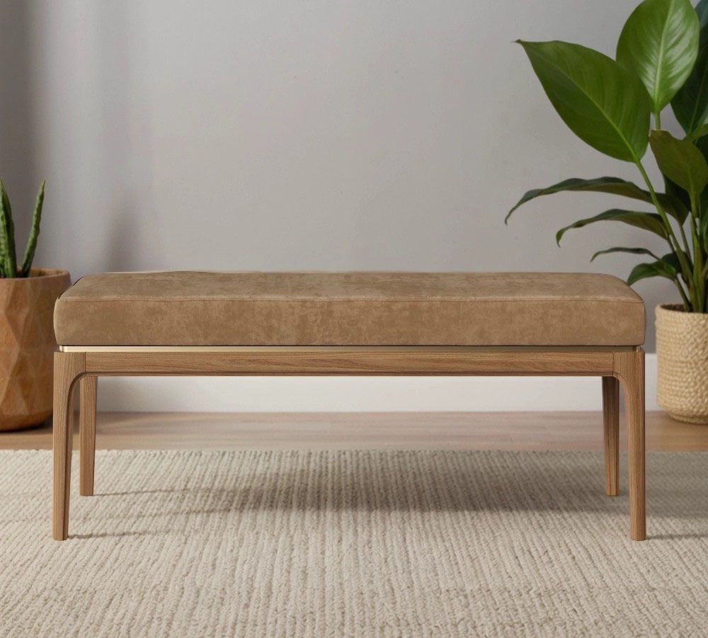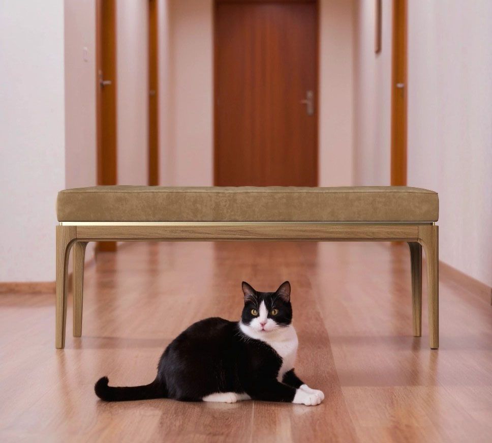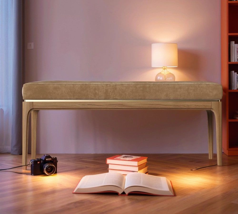 Скамья Bari. Лаконичные линии в духе модерна, подчеркнутые теплом натурального цвета ножек, превращают этот предмет мебели в практичный и оригинальный элемент интерьера.