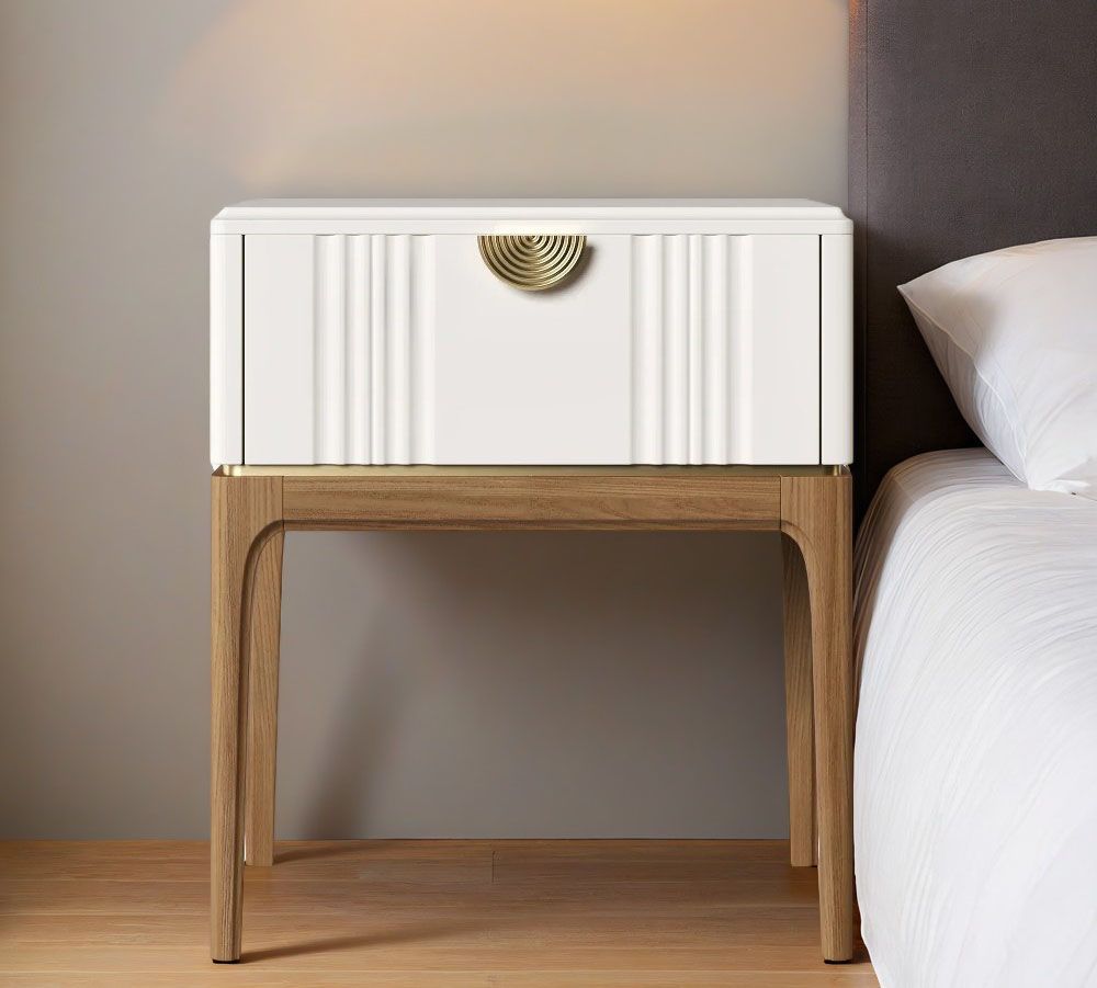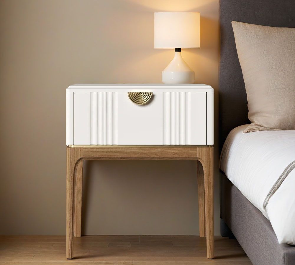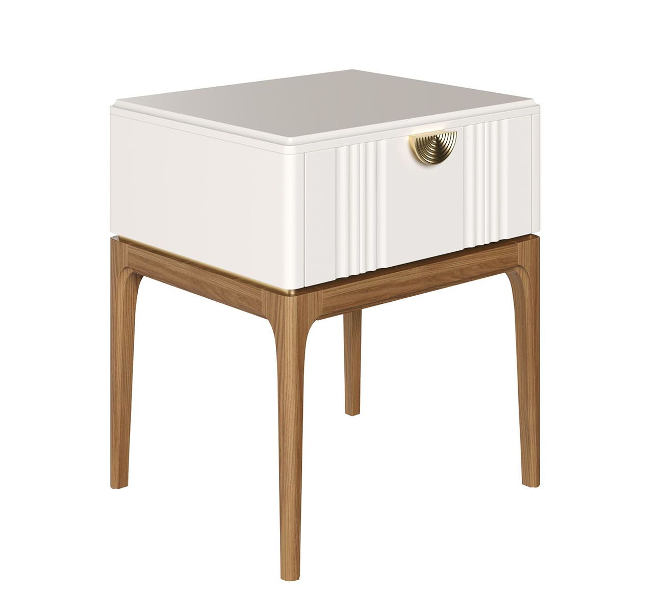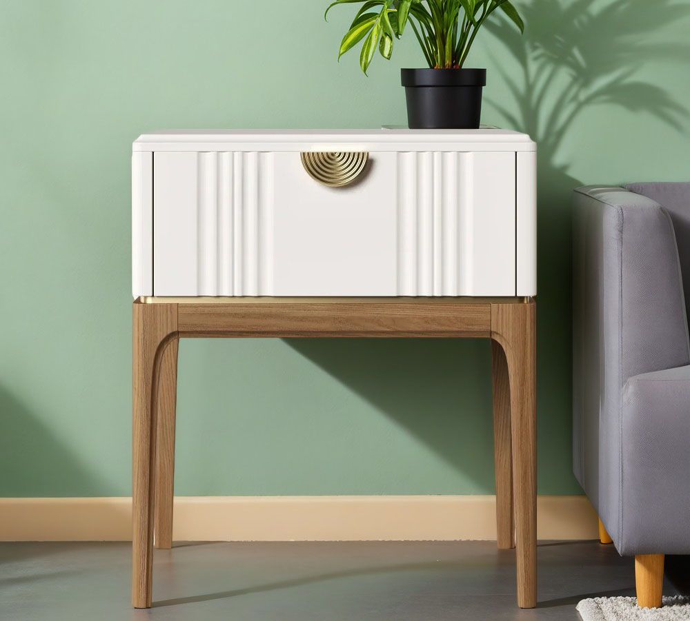 Тумба прикроватная Bari 1 ящик. Лаконичные линии в духе модерна, подчеркнутые теплом натурального цвета ножек, превращают этот предмет мебели в практичный и оригинальный элемент интерьера.