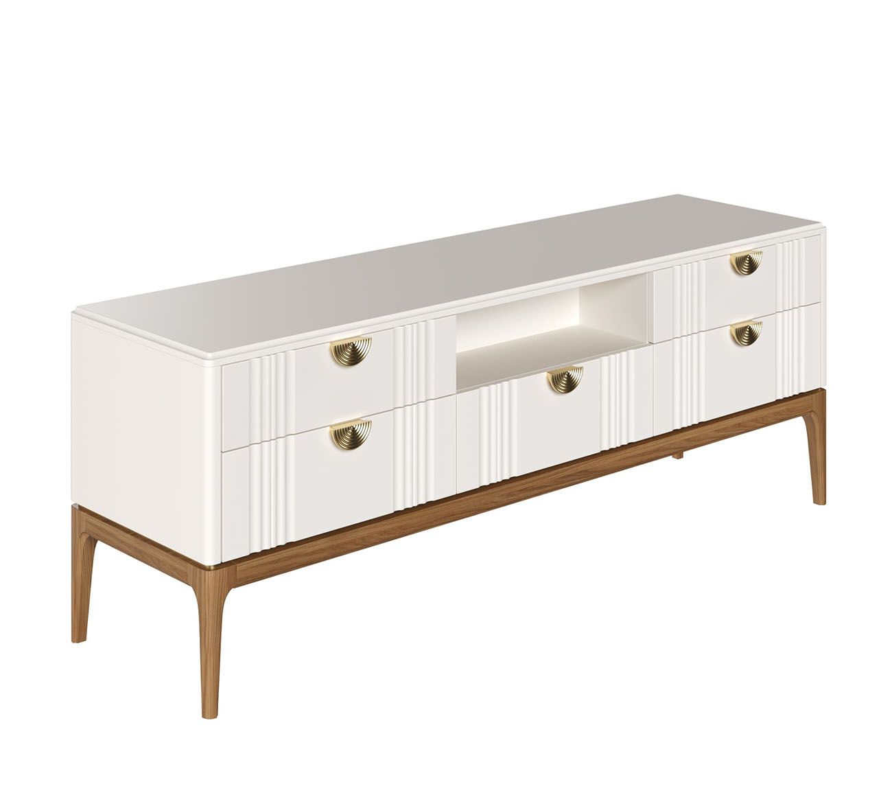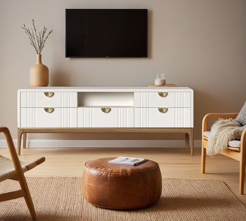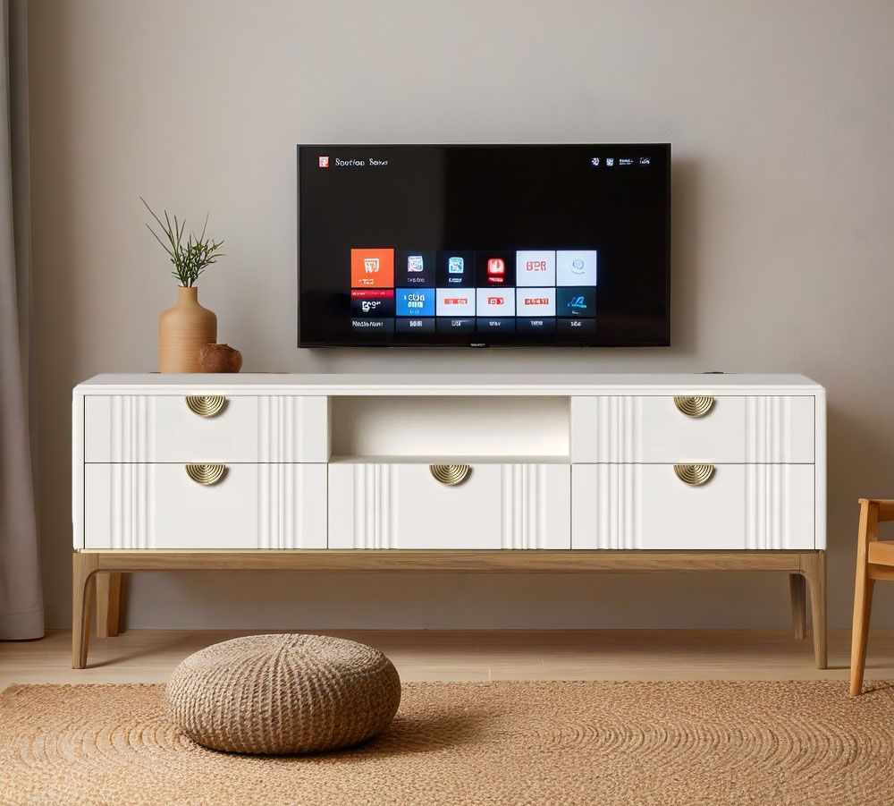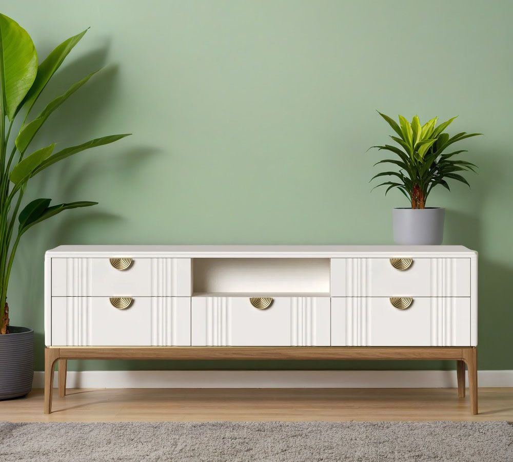 Тумба ТВ узкая Bari. Лаконичные линии в духе модерна, подчеркнутые теплом натурального цвета ножек, превращают этот предмет мебели в практичный и оригинальный элемент интерьера.