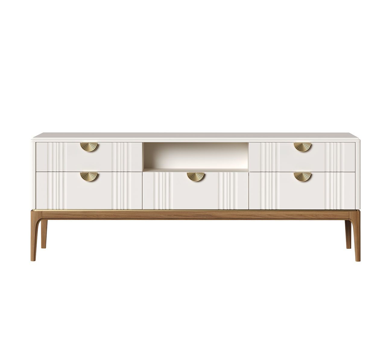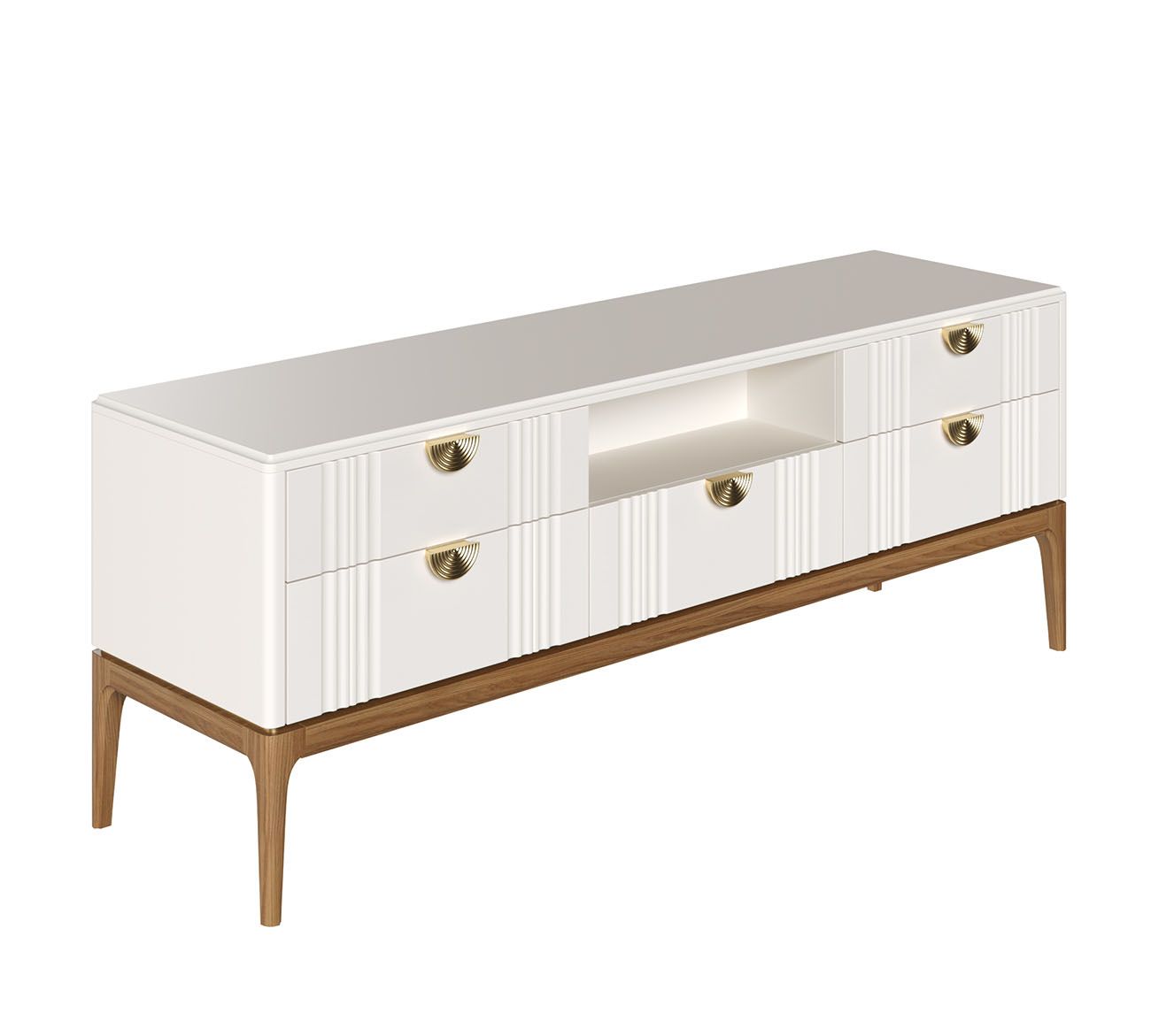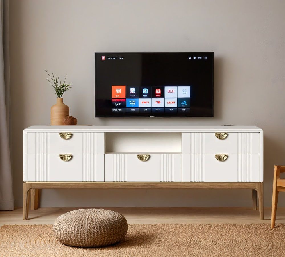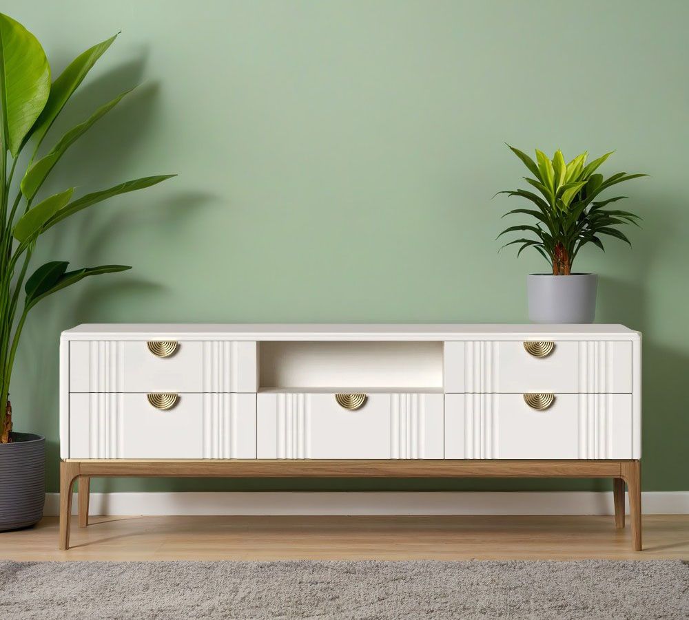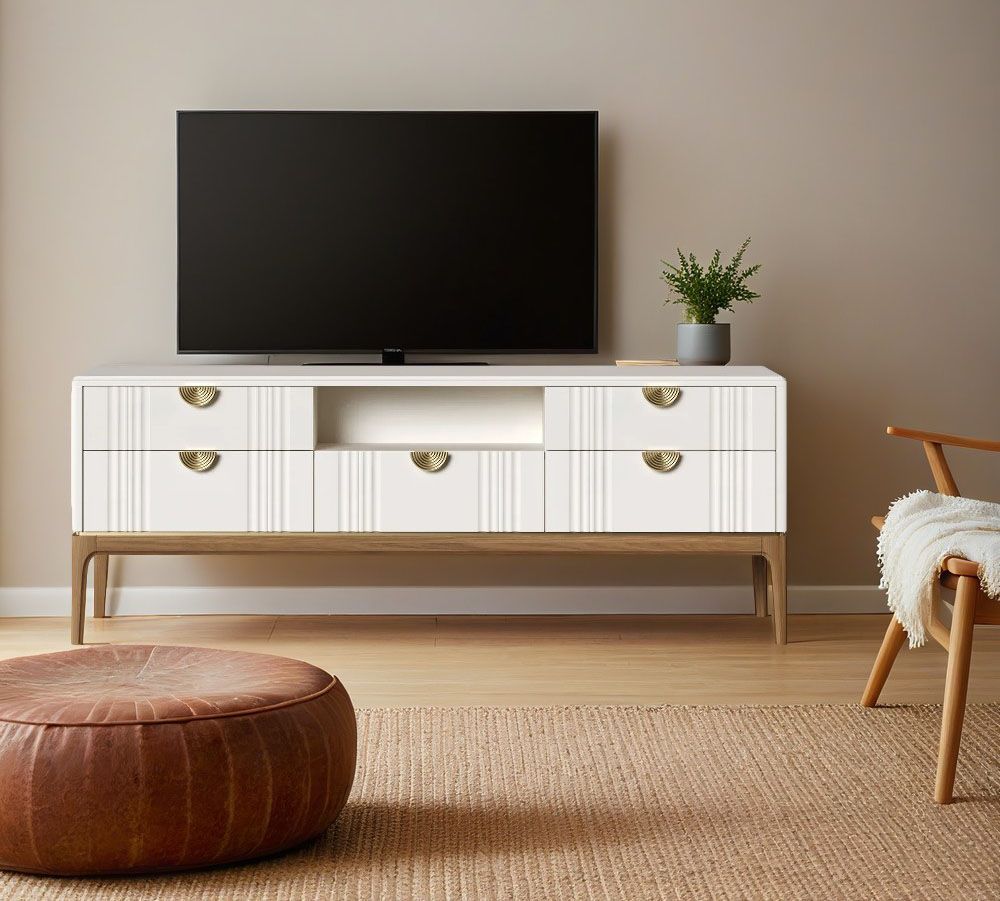 Тумба ТВ широкая Bari. Лаконичные линии в духе модерна, подчеркнутые теплом натурального цвета ножек, превращают этот предмет мебели в практичный и оригинальный элемент интерьера.