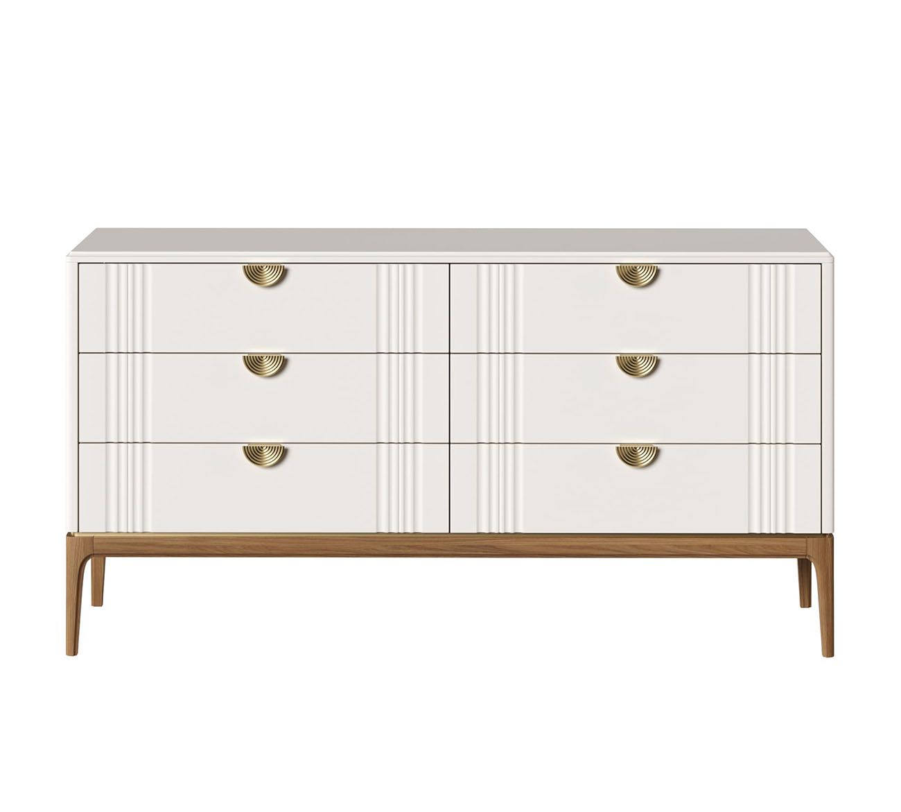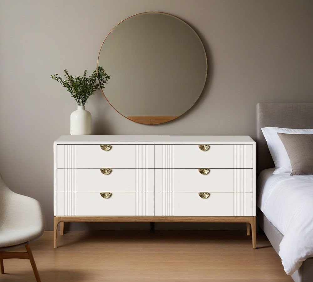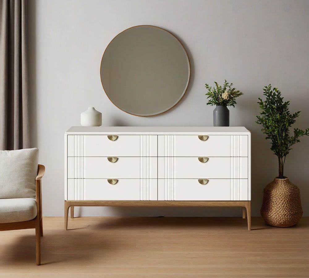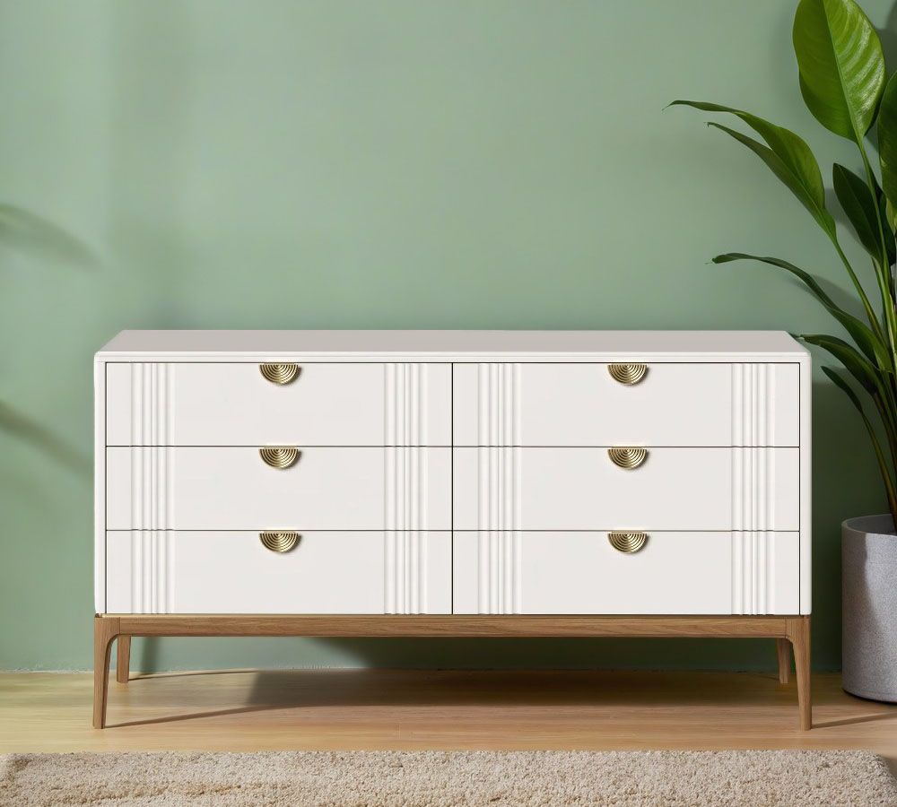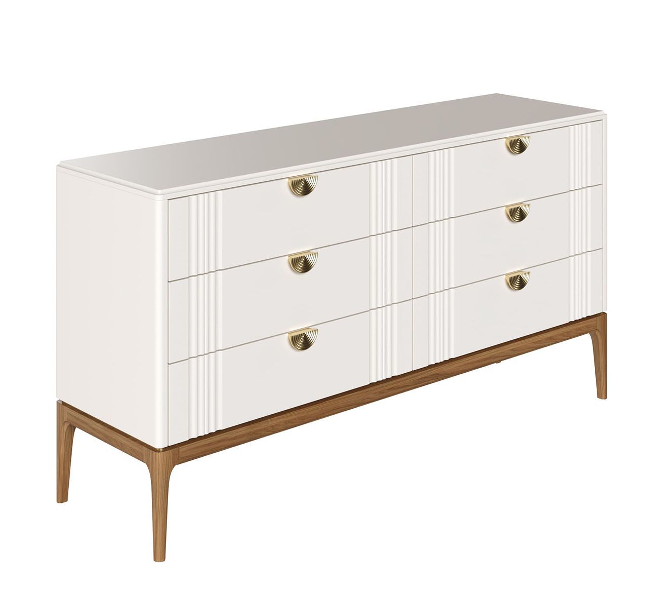 Комод Bari 6 ящиков . Лаконичные линии в духе модерна, подчеркнутые теплом натурального цвета ножек, превращают этот предмет мебели в практичный и оригинальный элемент интерьера.