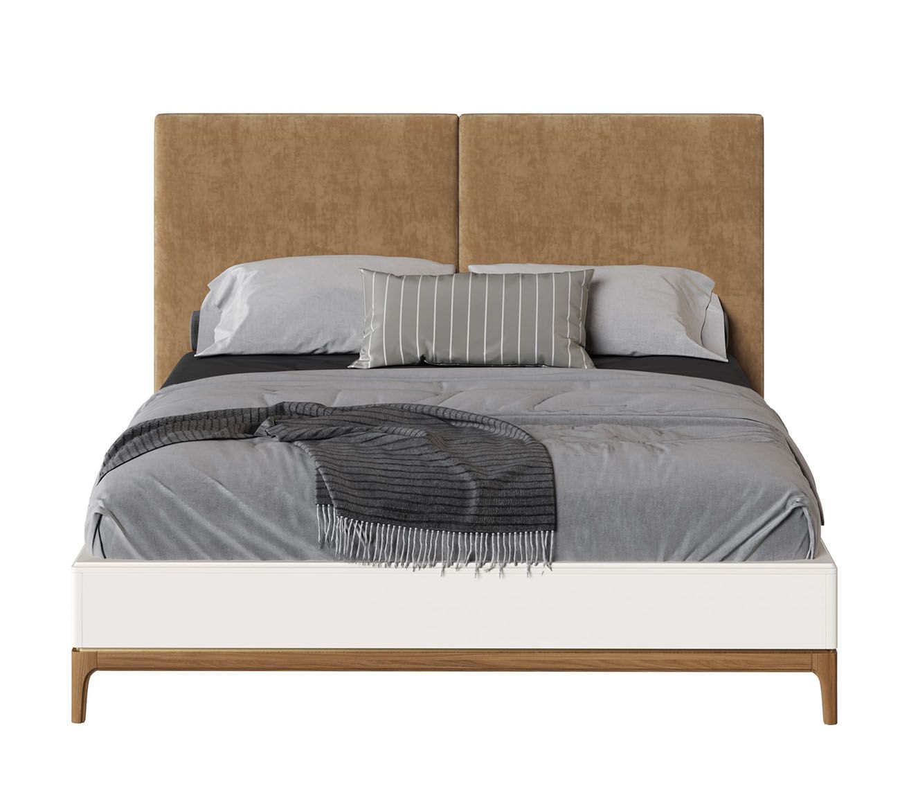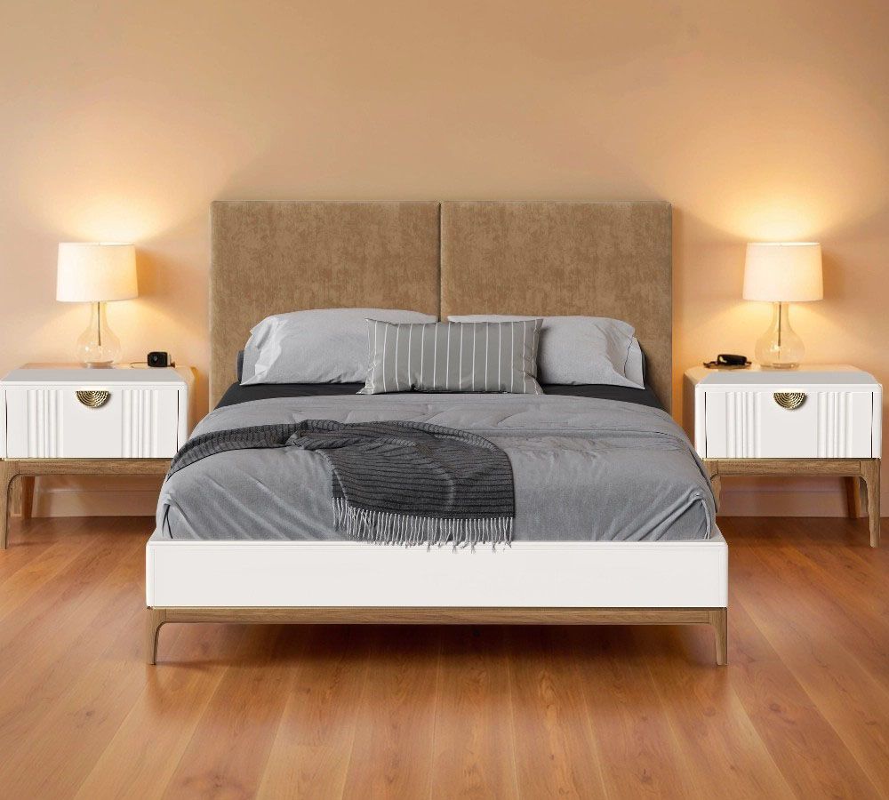 Кровать односпальная Bari с мягкой спинкой. Лаконичные линии в духе модерна, подчеркнутые теплом натурального цвета ножек, превращают этот предмет мебели в практичный и оригинальный элемент интерьера.
