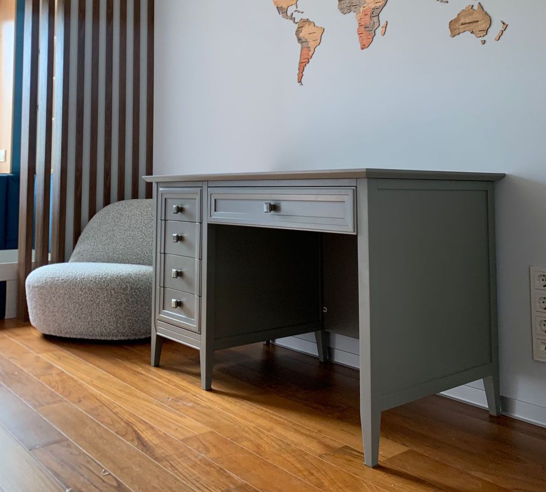 Стол письменный с одной тумбой из коллекции Tesoro, идеальный выбор для тех, кто ценит лаконичный дизайн и современный стиль. Этот стол отлично подойдет для офиса, квартиры, дома или гостиницы, добавляя в помещение нотку стиля и элегантности.