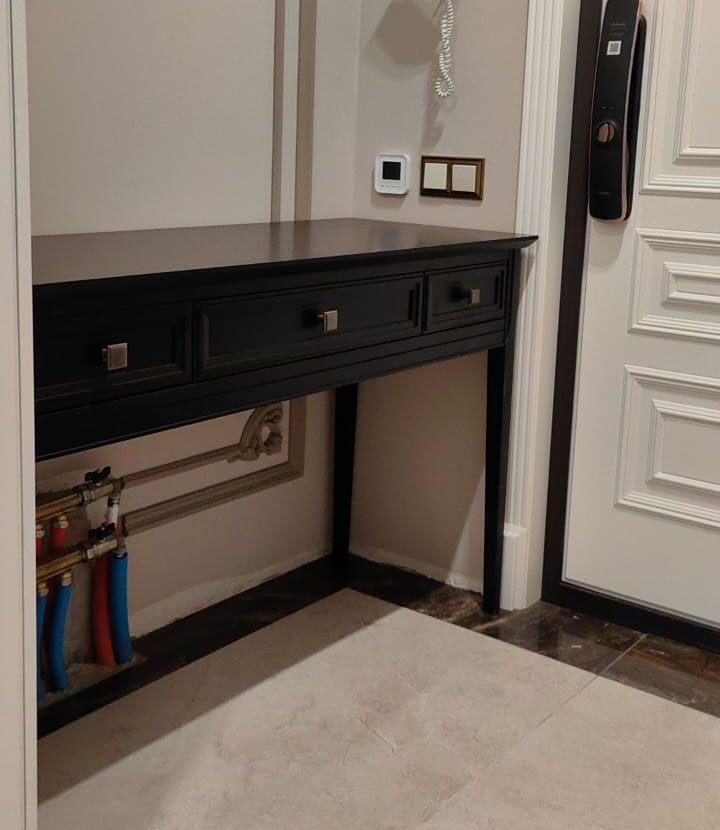 Стол-консоль из коллекции Tesoro - это универсальное и стильное решение для вашего интерьера. Изысканный дизайн этого стола позволяет использовать его как письменный стол в офисе или рабочей зоне, а также в качестве туалетного столика в спальне или прихожей.