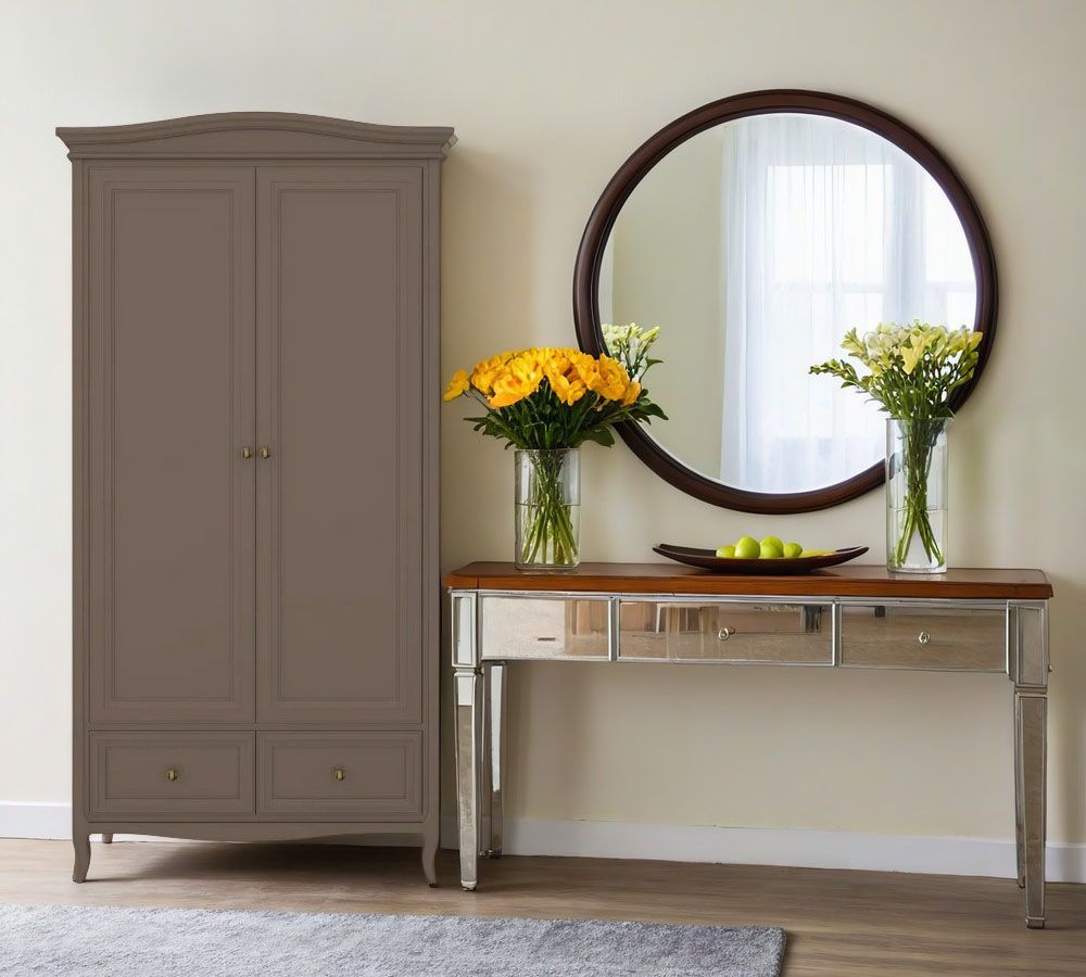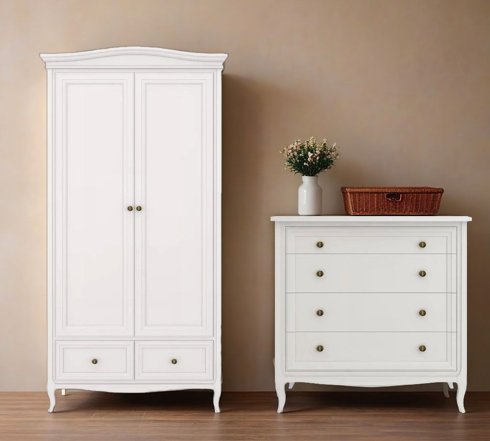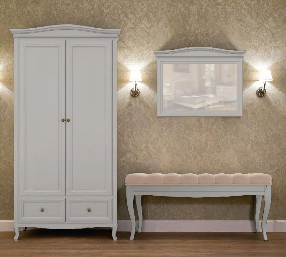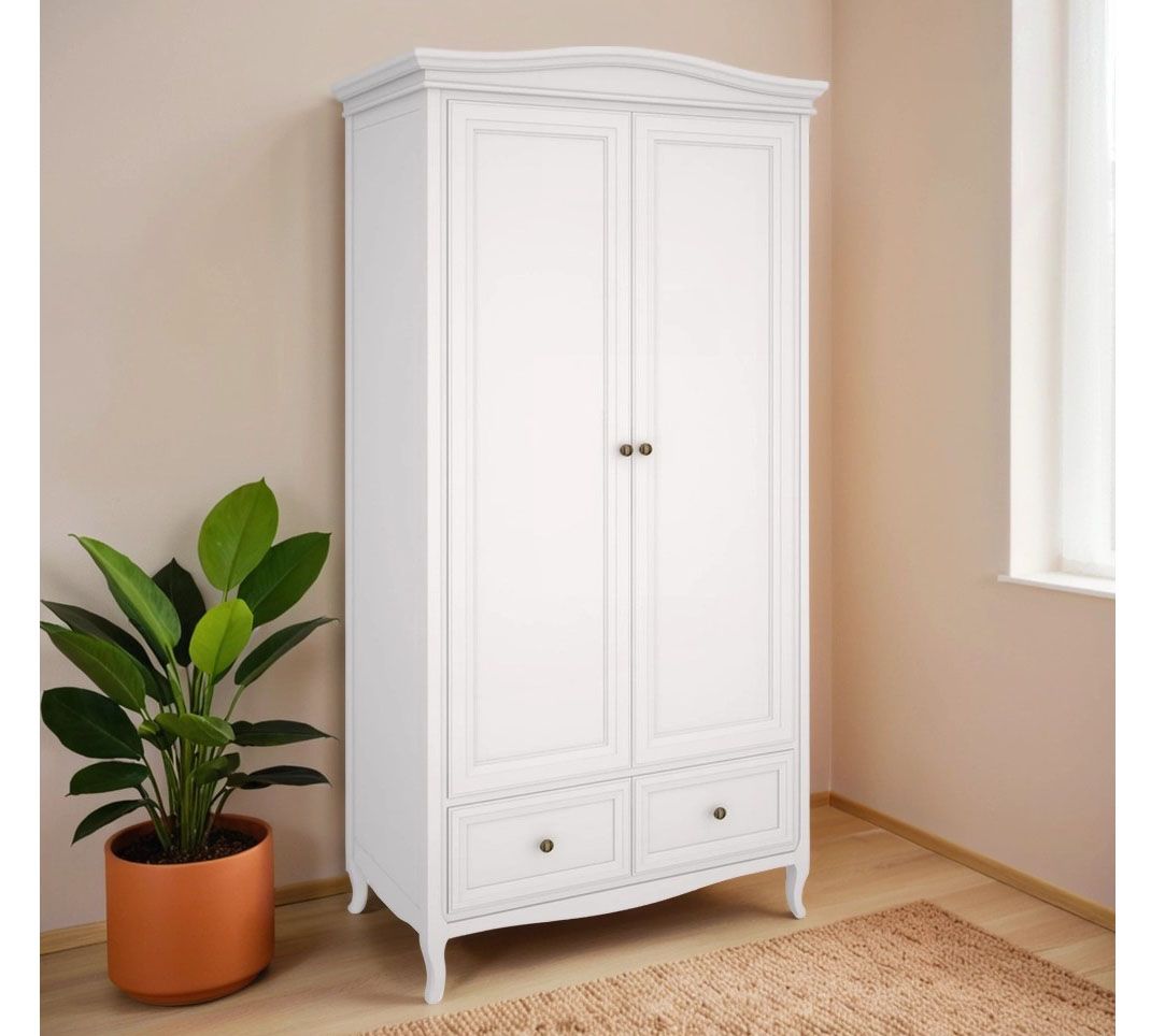 Шкаф двухдверный Majessa - это красивое и функциональное решение для вашего интерьера. Стильное исполнение в неоклассическом стиле придаст вашему интерьеру изысканность и элегантность.