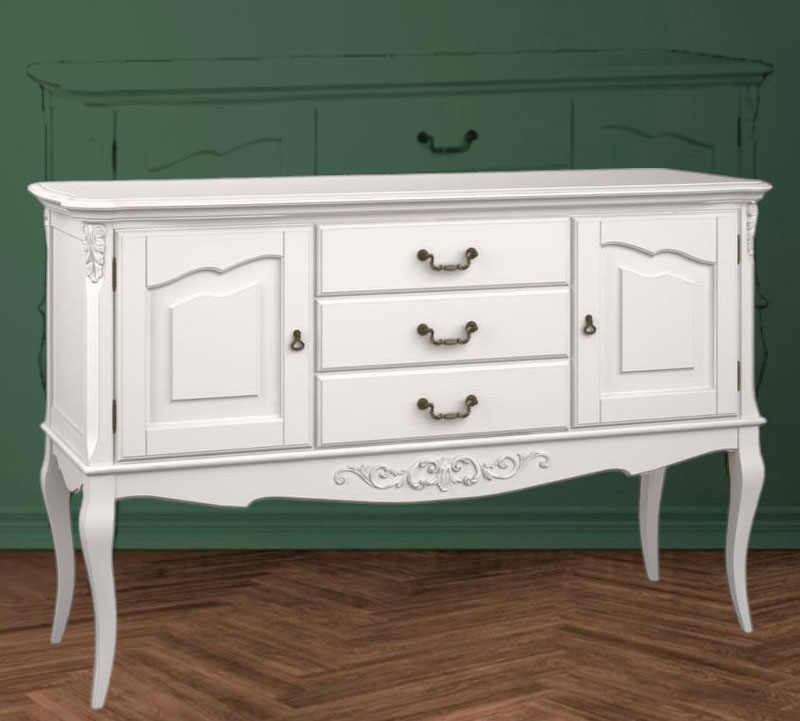 Консоль из коллекции Marlette представляет собой элегантную мебель в стиле классика и прованс. Она имеет 3 ящика и 2 распашных фасада, что обеспечивает удобное хранение и оригинальный внешний вид.