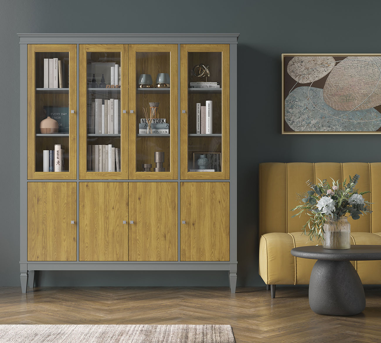 Шкаф для посуды Ольса-С 440 - отличный вариант для хранения любимых книг. Здесь они будут в полном порядке и всегда под рукой. Оснащен вместительными полками за стеклянными дверями сверху и филенчатыми дверями снизу. Устойчиво держится на высоких ножках. Хороший вариант для гостиной, детской комнаты или кабинета. Может использоваться самостоятельно или в сочетании с другими предметами из этой коллекции.