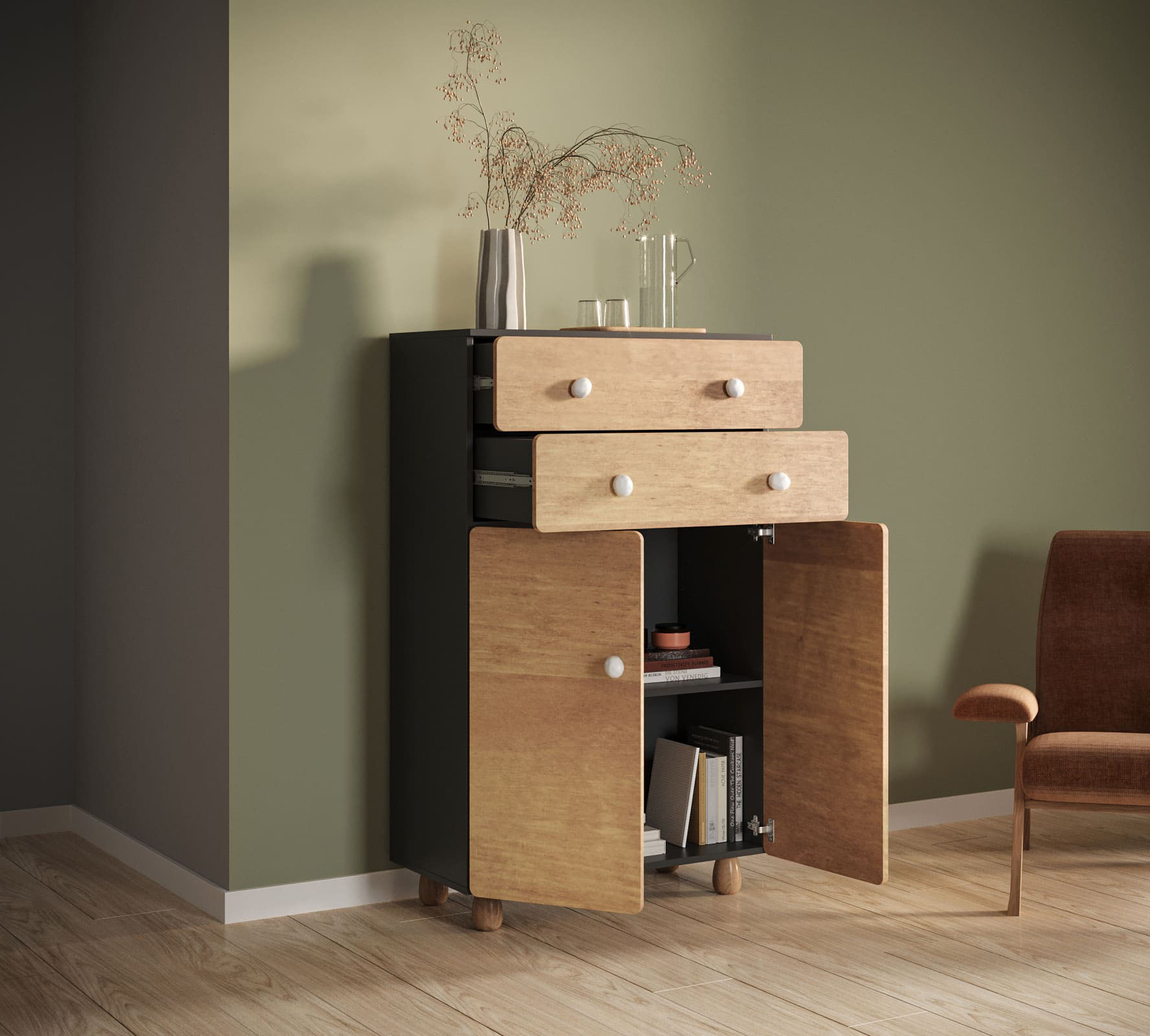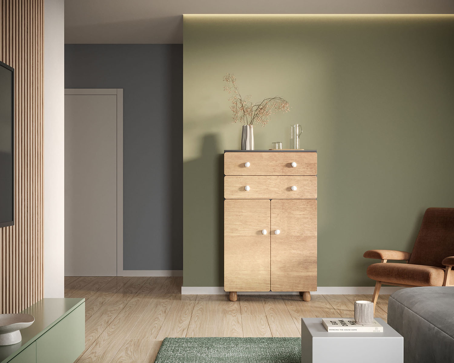 Комод с ящиками и дверками Сплит SP06 предназначен для тех, кто хочет организовать хранение без перегруженности пространства. Он подходит для размещения повседневных вещей и помогает поддерживать порядок, сохраняя аккуратный и спокойный внешний вид помещения. Универсальные пропорции позволяют использовать модель в разных зонах дома.