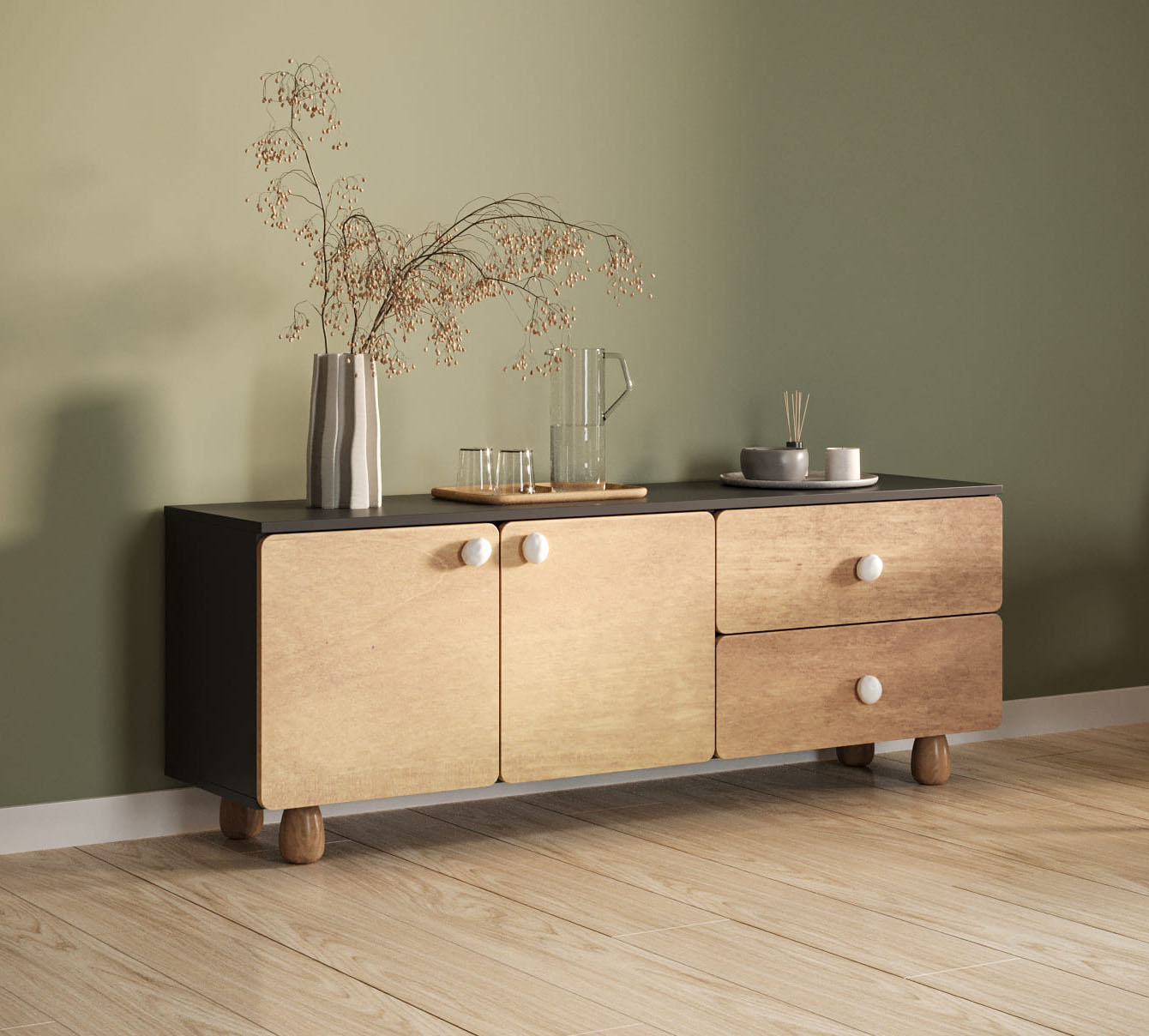 Комод низкий с двумя дверками и ящиками Сплит SP11