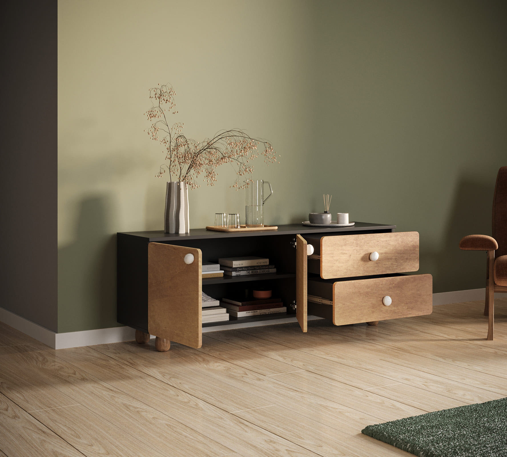 Комод низкий с двумя дверками и ящиками Сплит SP11 предназначен для тех, кто хочет организовать хранение без перегруженности пространства. Он подходит для размещения повседневных вещей и помогает поддерживать порядок, сохраняя аккуратный и спокойный внешний вид помещения. Универсальные пропорции позволяют использовать модель в разных зонах дома.
