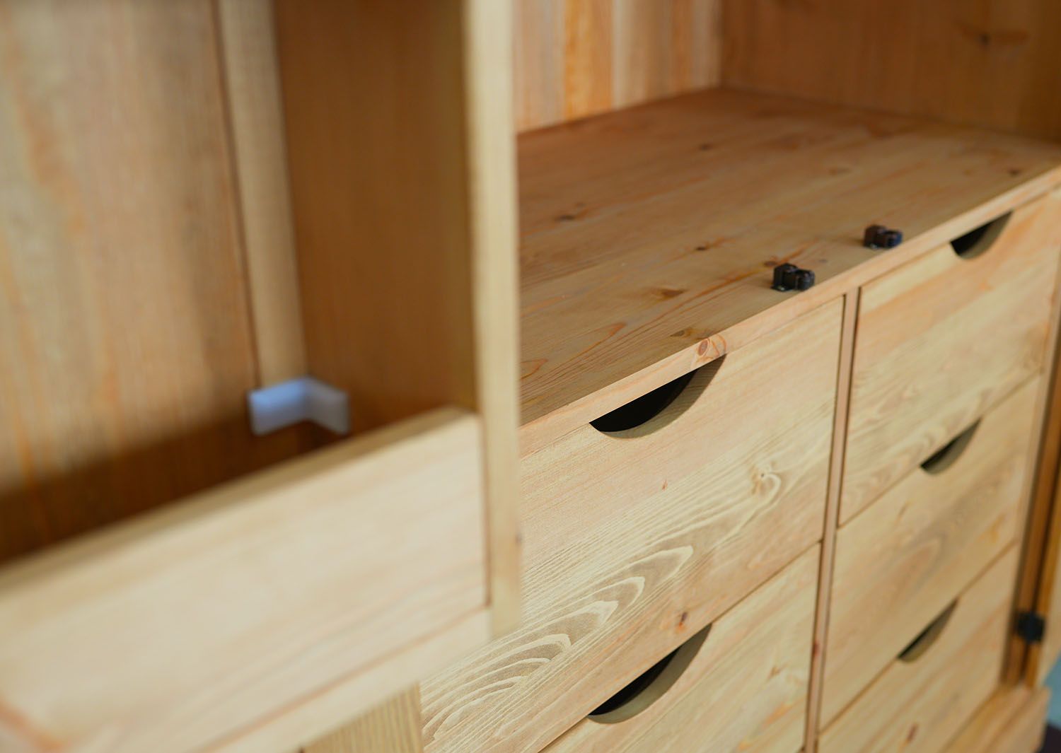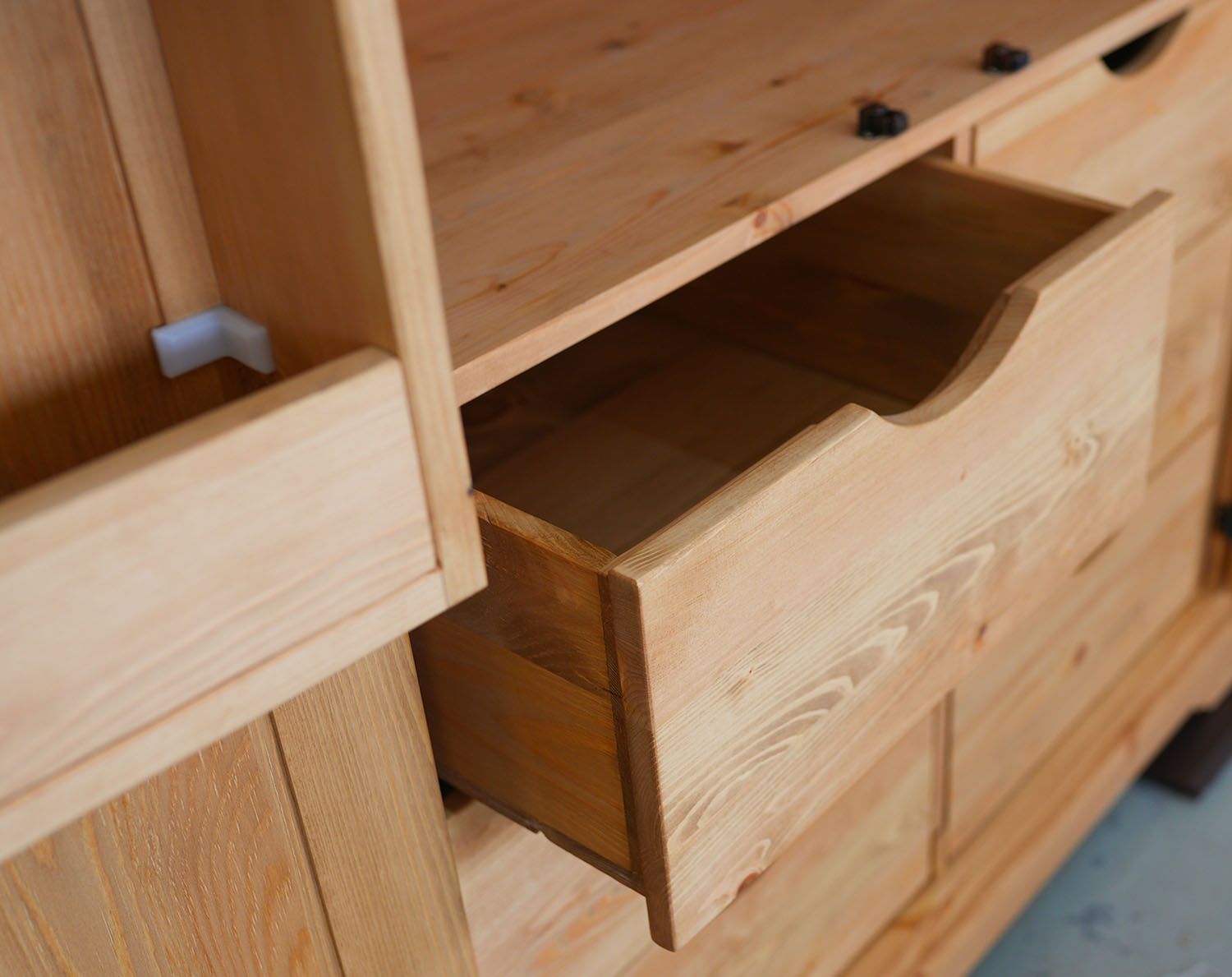 Внутреннее наполнение: 6 выдвижных ящиков и 3 полки внутри, полки на дверцах