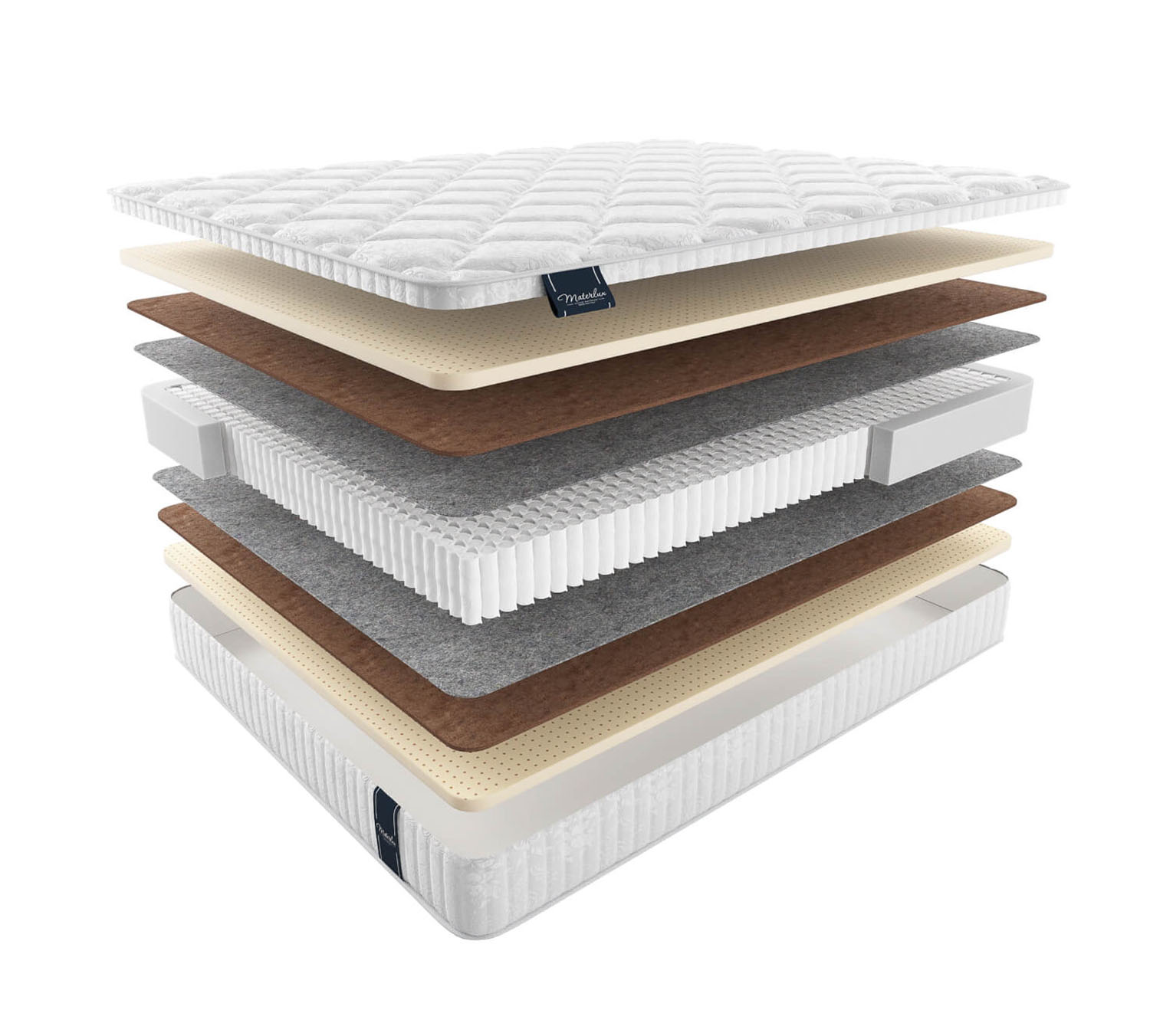 • Независимые пружины в сочетании с кокосом и натуральным латексом позволяют матрасу максимально идеально подстраиваться под форму Вашего тела.