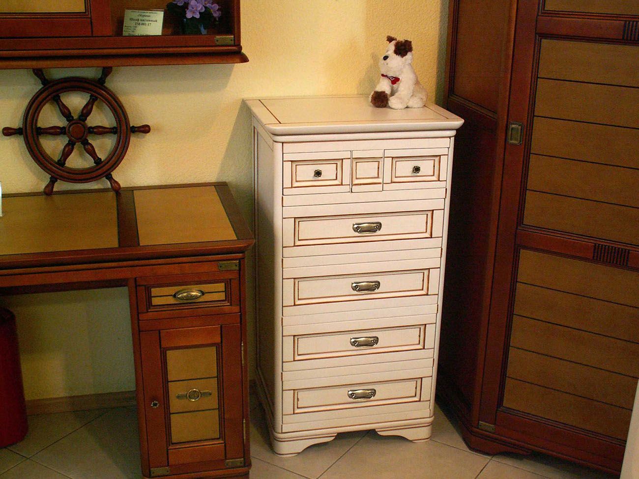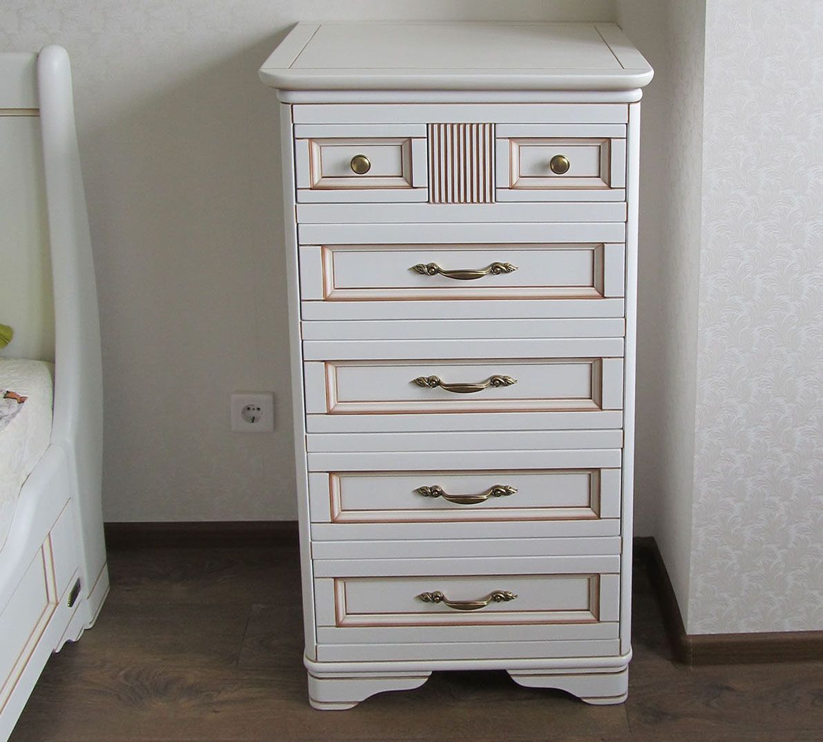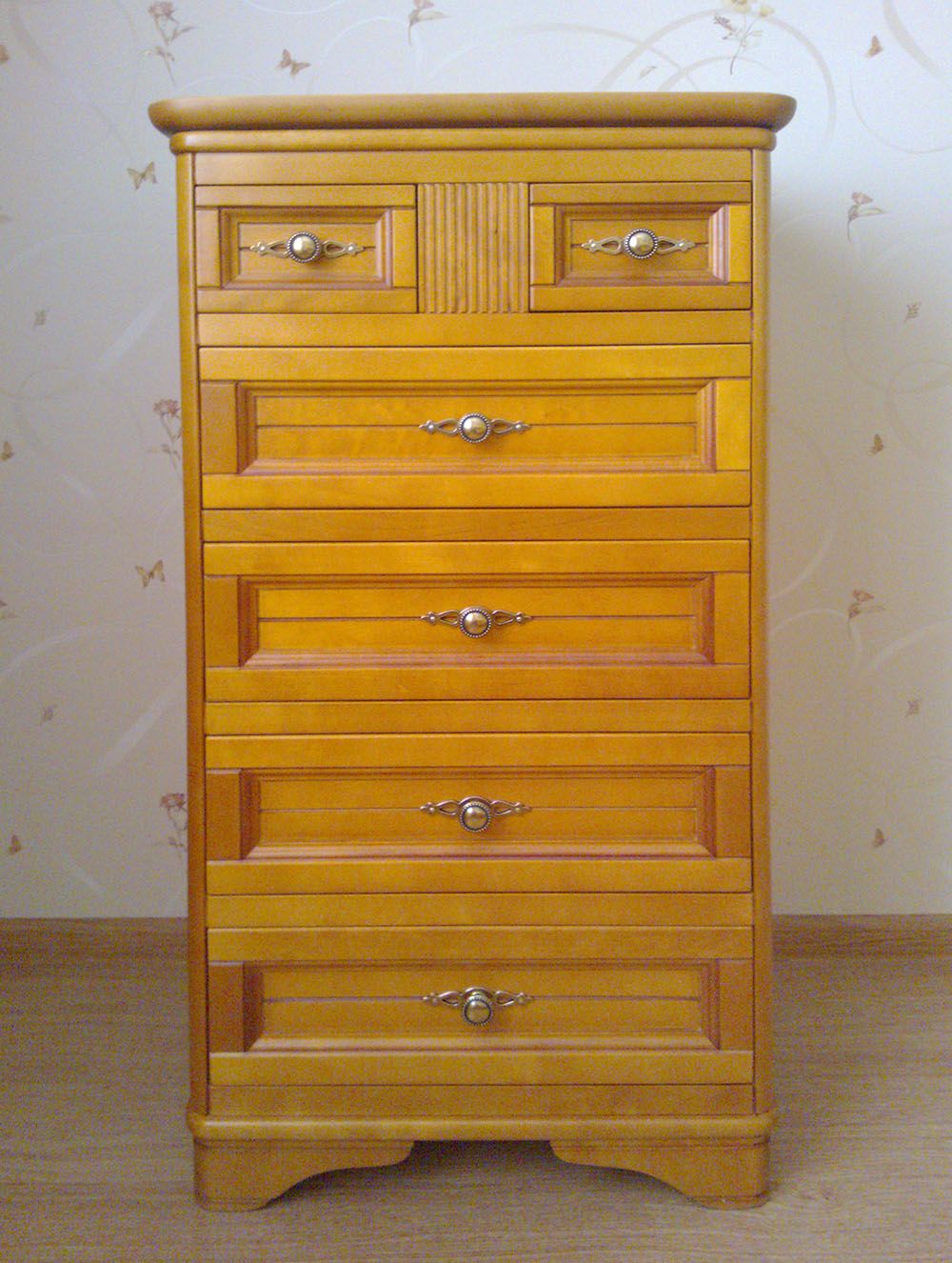 Комод Марина СКМ-001-04 из качественных и экологичных материалов с шестью выдвижными ящиками: два ящика - узкие, четыре - широкие.