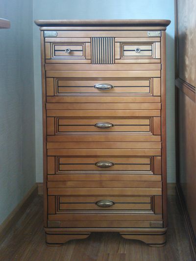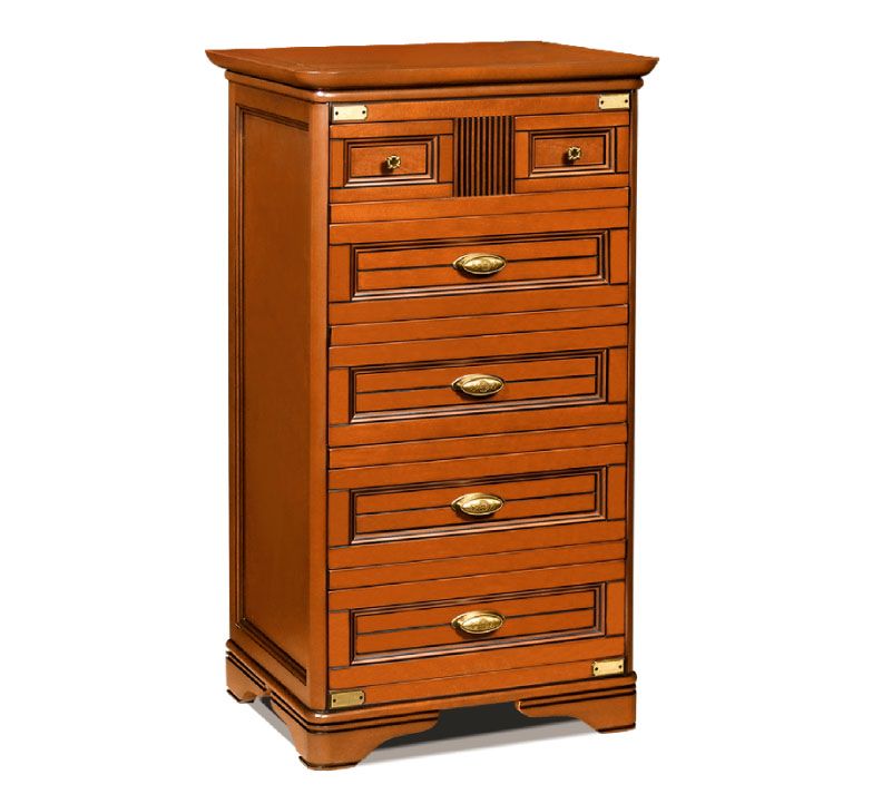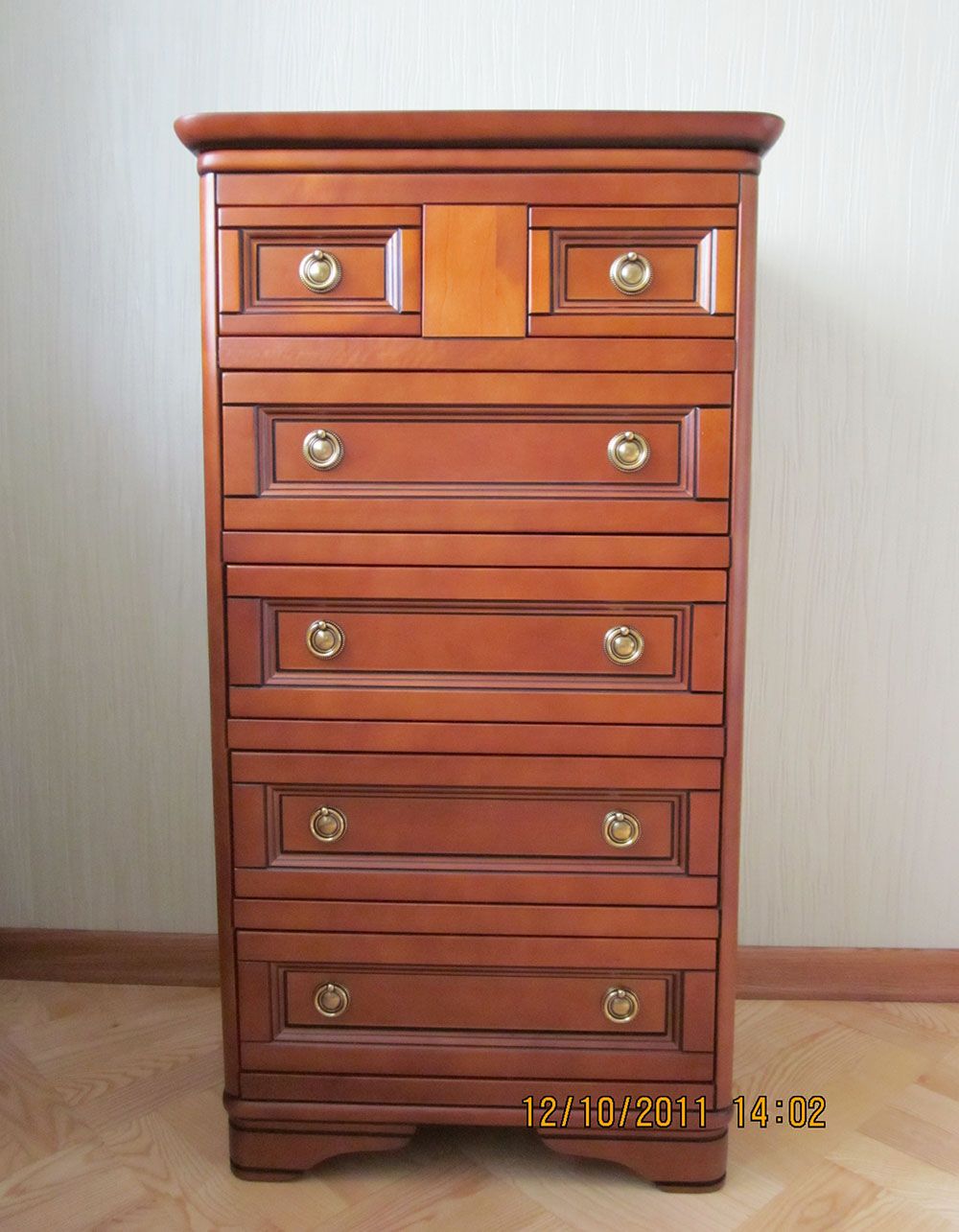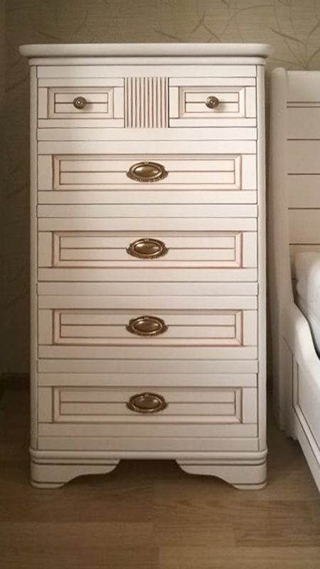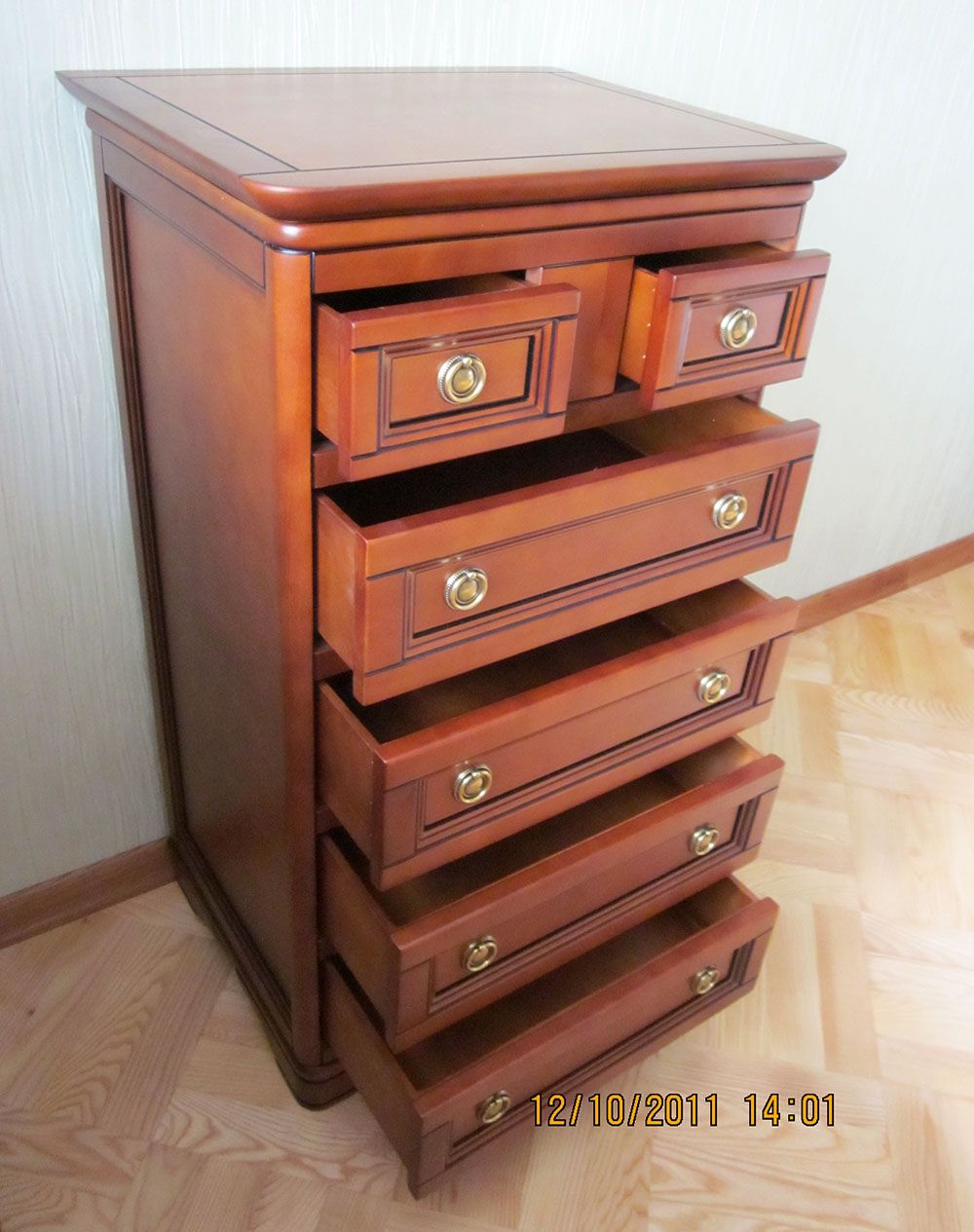 Комод Марина СКМ-001-04 из качественных и экологичных материалов с шестью выдвижными ящиками: два ящика - узкие, четыре - широкие.