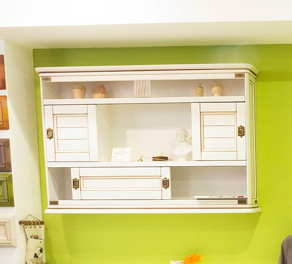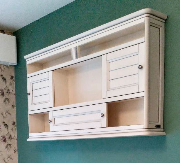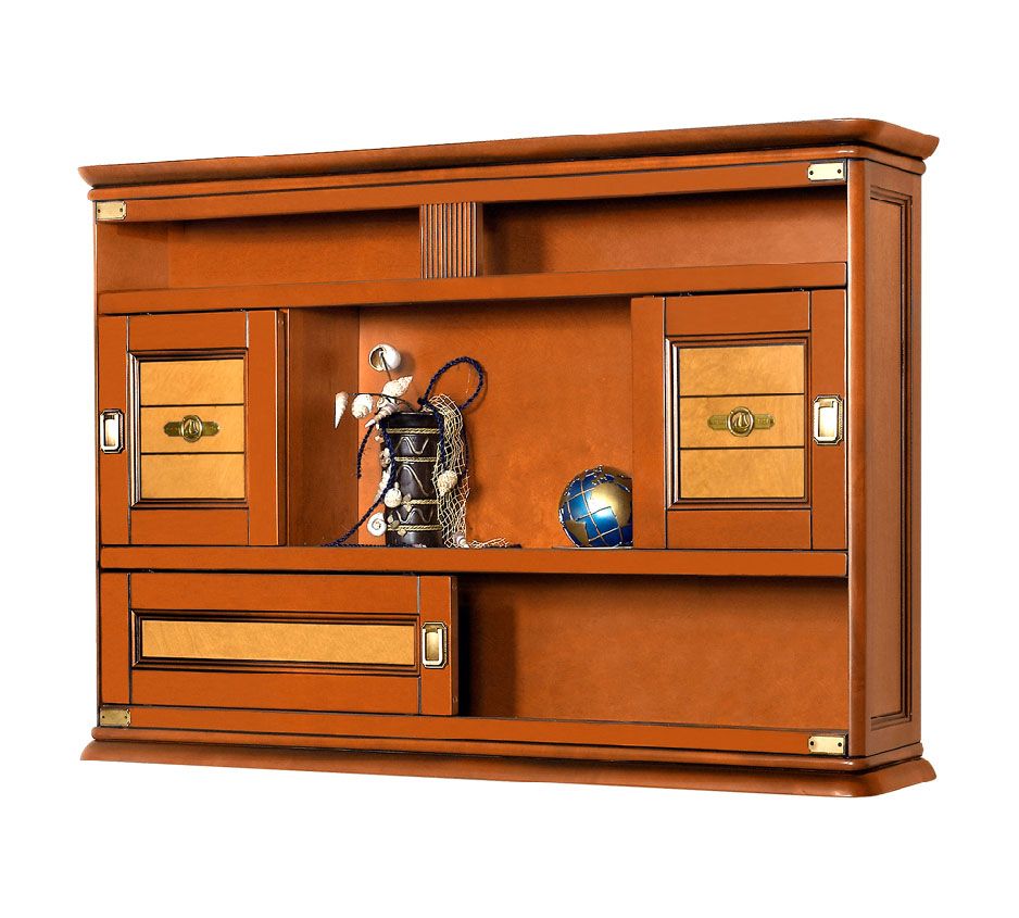 Шкаф настенный навесной Марина СКМ-001-17 из качественных и экологичных материалов для книг, дисков с тремя раздвижными дверями и тремя нишами.