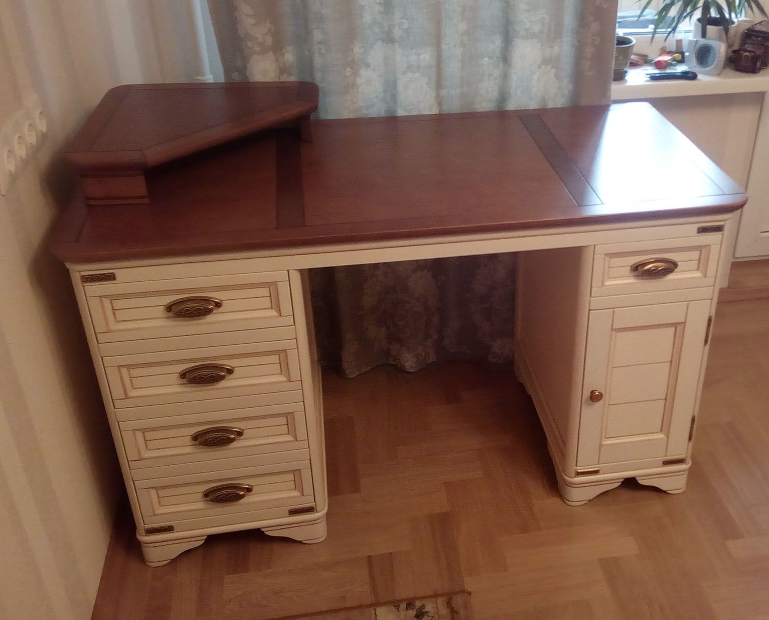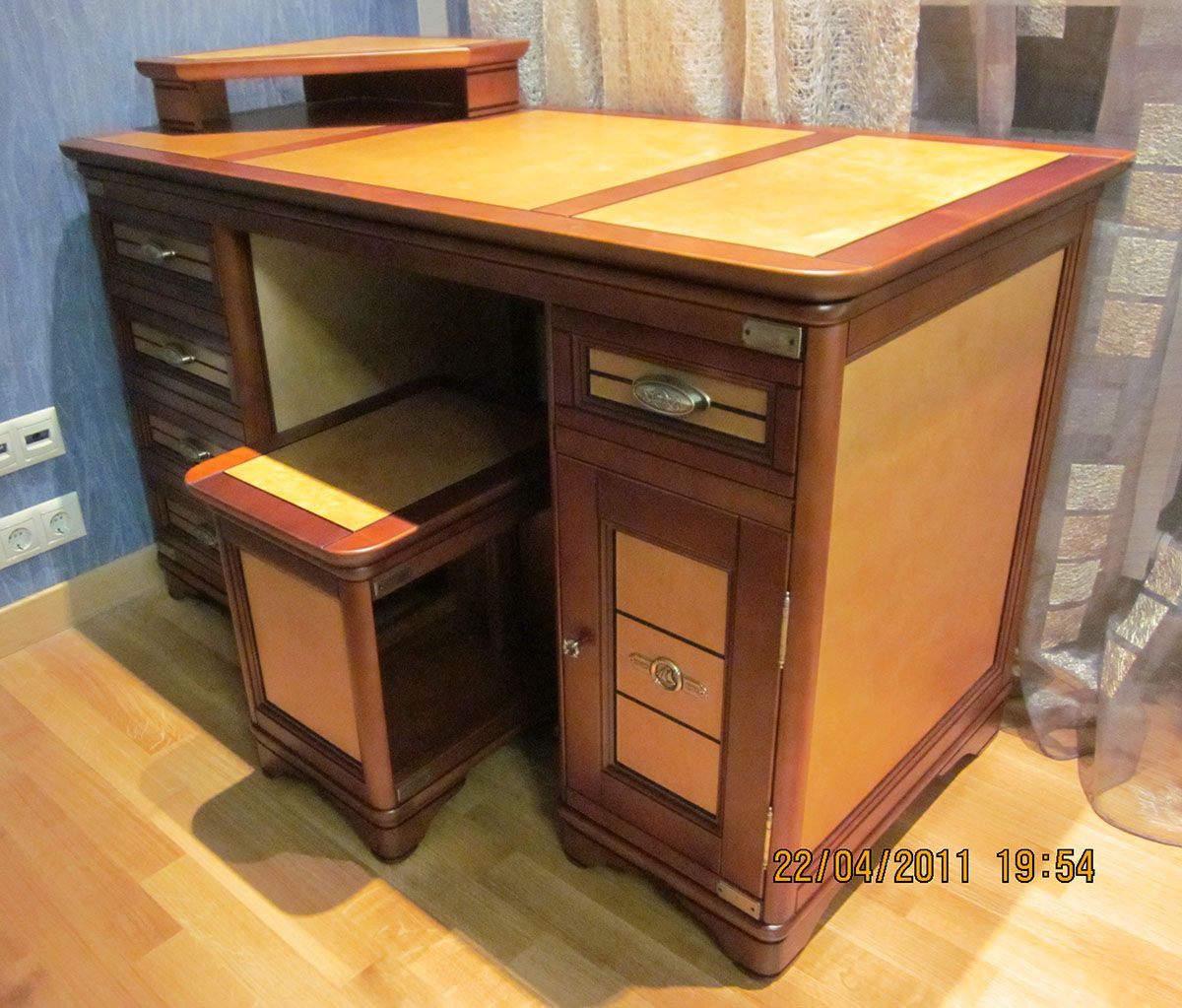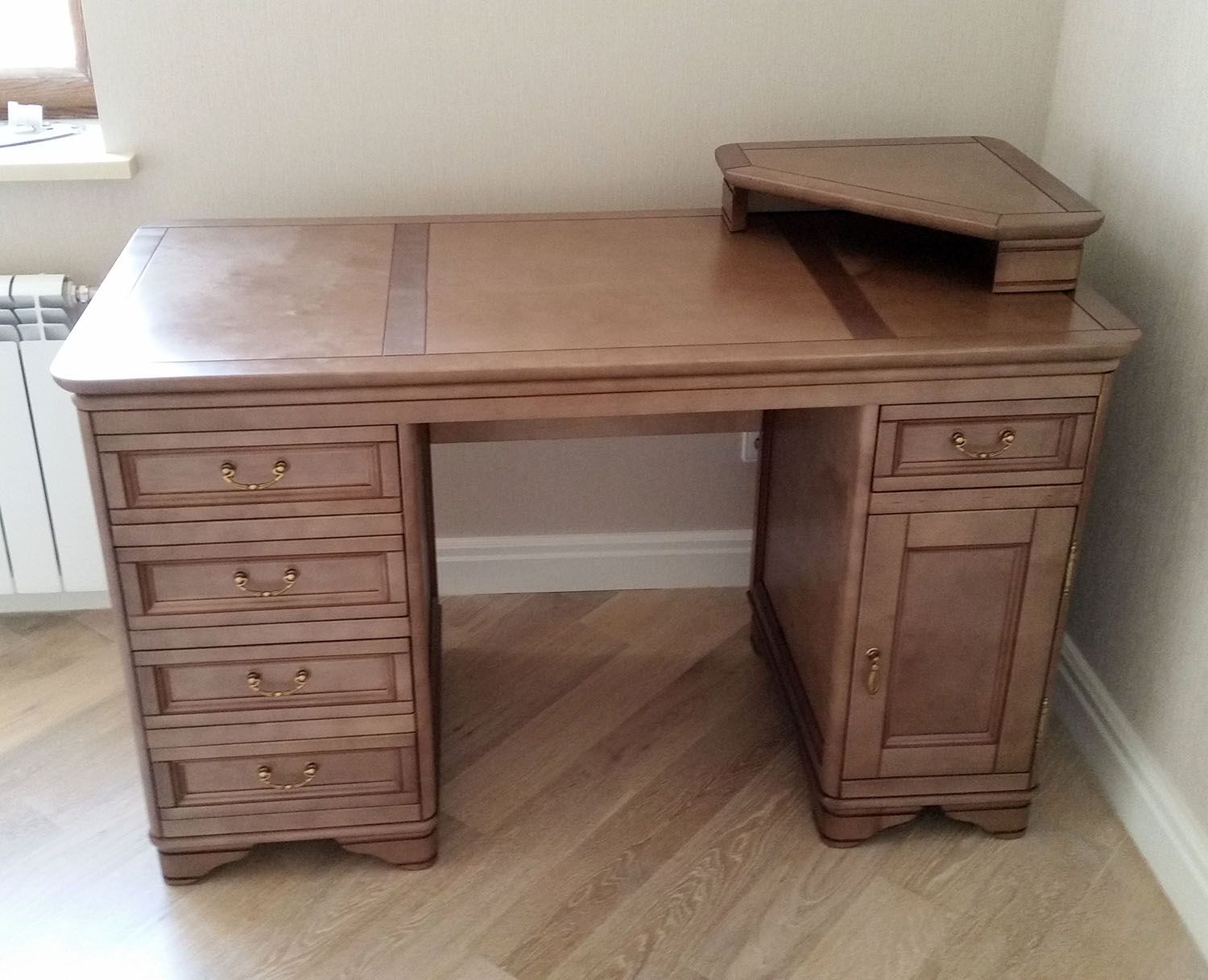 Стол письменный Марина СКМ-001-19 из качественных и экологичных материалов с двумя тумбами. С одной стороны - тумба с ящиками, с другой - тумба под системный блок. Есть подставка под монитор.