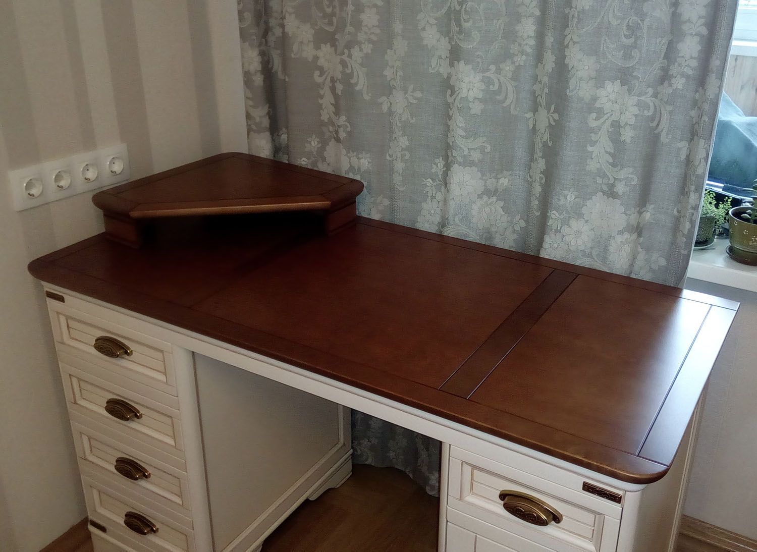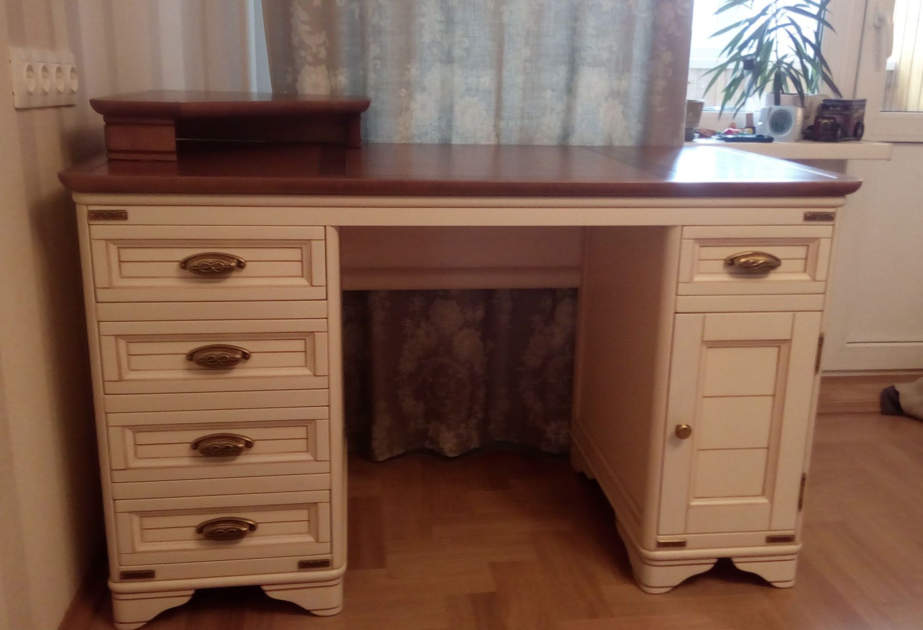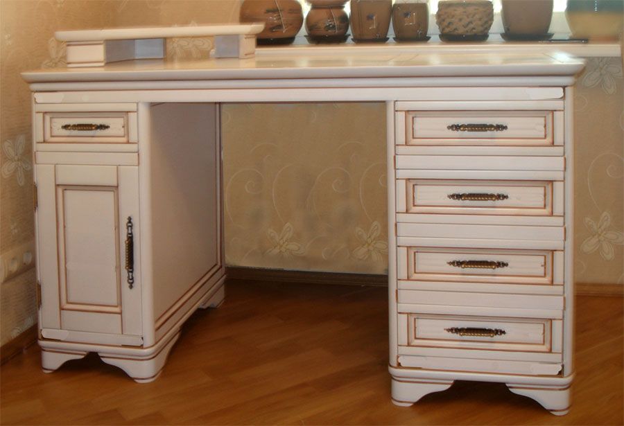 Стол письменный Марина СКМ-001-19 из качественных и экологичных материалов с двумя тумбами. С одной стороны - тумба с ящиками, с другой - тумба под системный блок. Есть подставка под монитор.