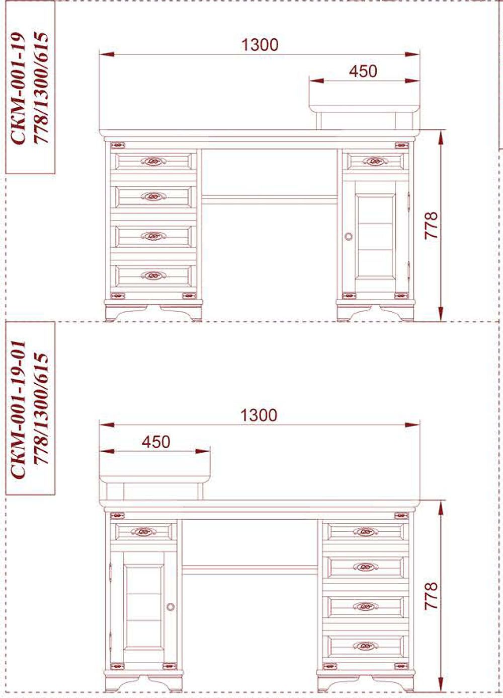 Цвет/отделка: Золотой орех (втирание), артикул: СКМ-001-19-01, модель: ящики справа