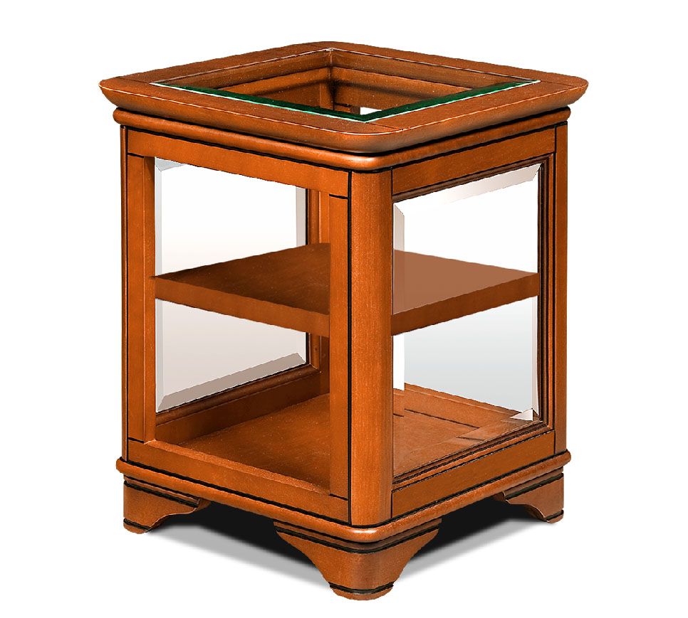 Квадратный Стол журнальный Марина СКМ-001-60 из качественных и экологичных материалов. Две стеклянные боковые стенки и стеклянная крышка. Посередине - полка.