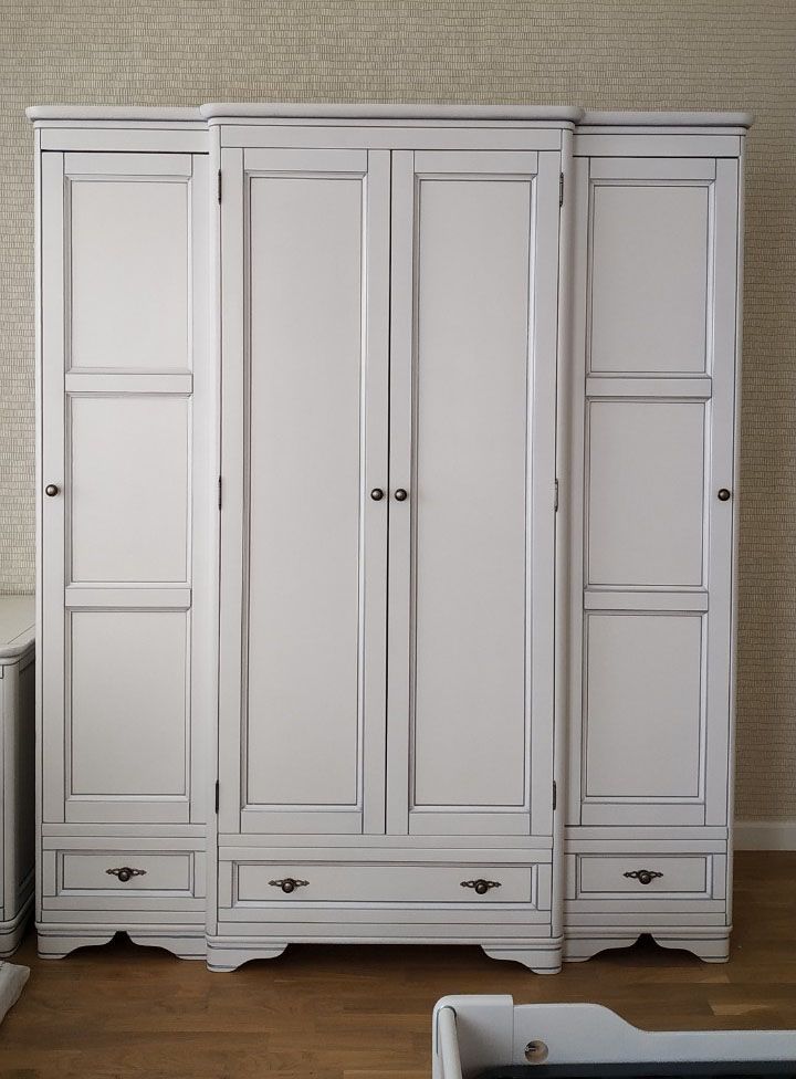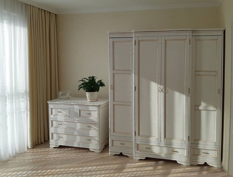 Шкаф для одежды с антресолью Марина СКМ-001-14А из качественных и экологичных материалов с двумя распашными дверями в центральной части и двумя раздвижными - в боковых. Снизу - три выдвижных ящика. Центральная часть выступает по глубине на 50 мм. Внутреннее наполнение может быть любым. Стандартное: в центральной части - штанга, в боковых - по три полки. Вверху антресоль высотой 300мм.