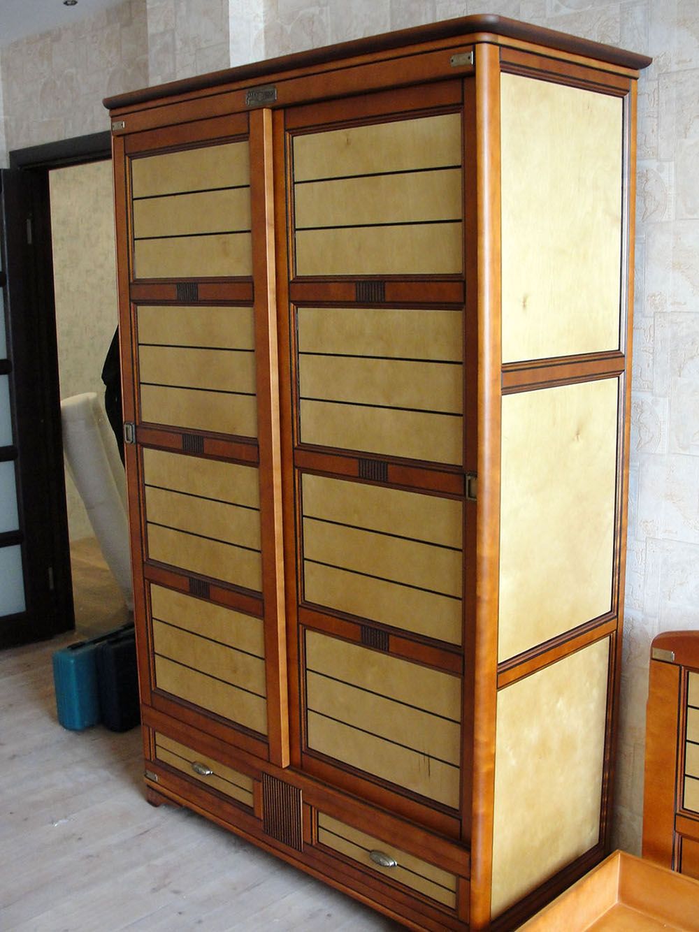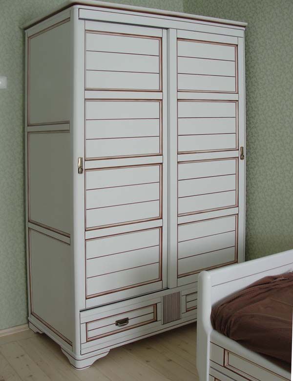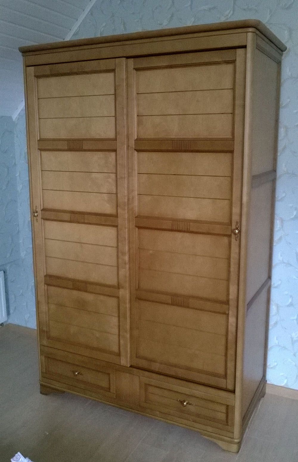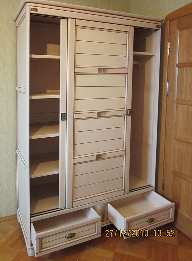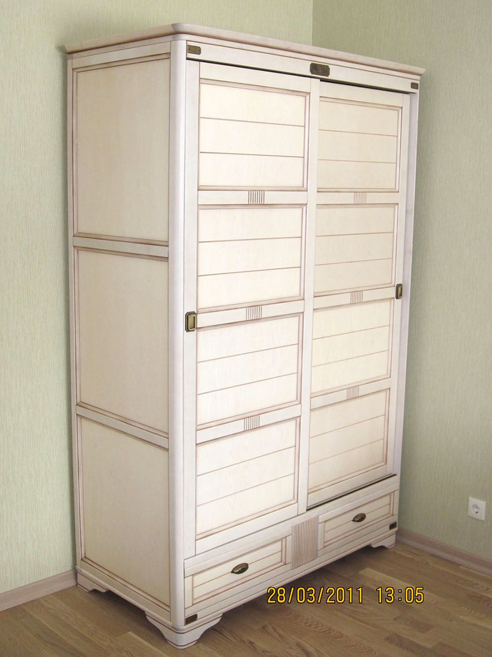 Шкаф для одежды Марина СКМ-001-13 из качественных и экологичных материалов с двумя раздвижными дверьми и двумя ящиками. Внутреннее наполнение шкафа может быть любым. В стандартной модели в одной створке - штанга и полка, во второй - три полки.